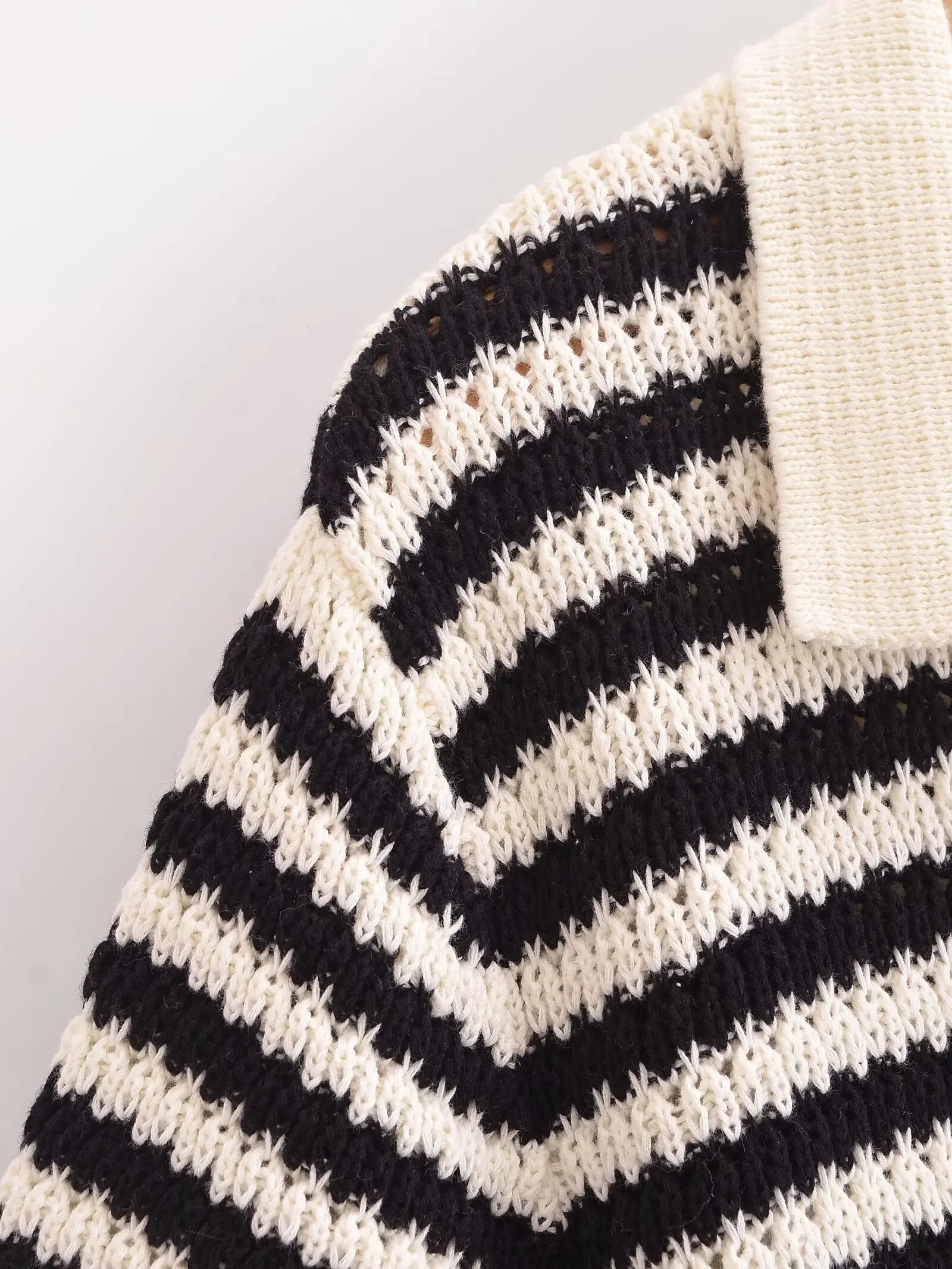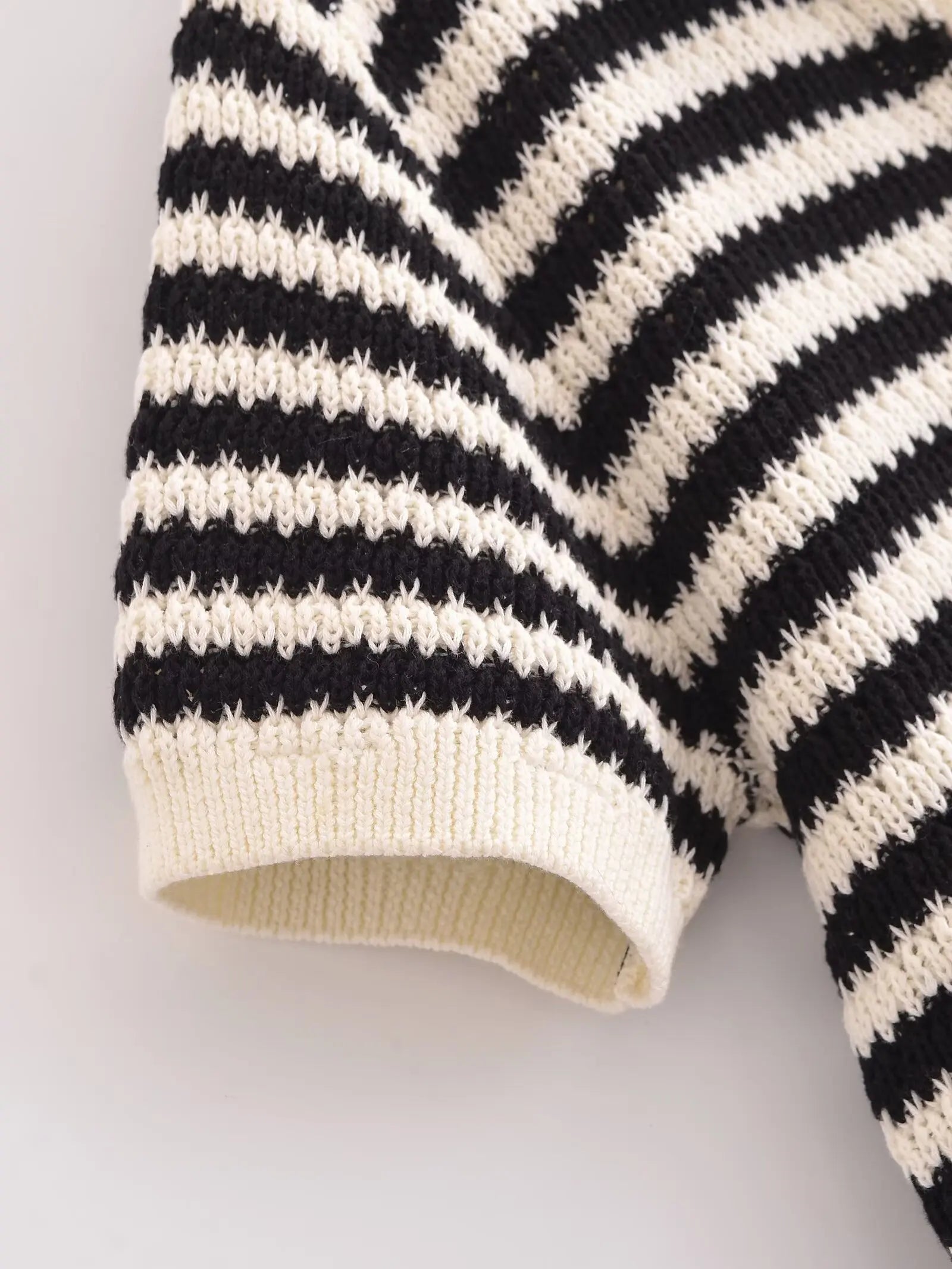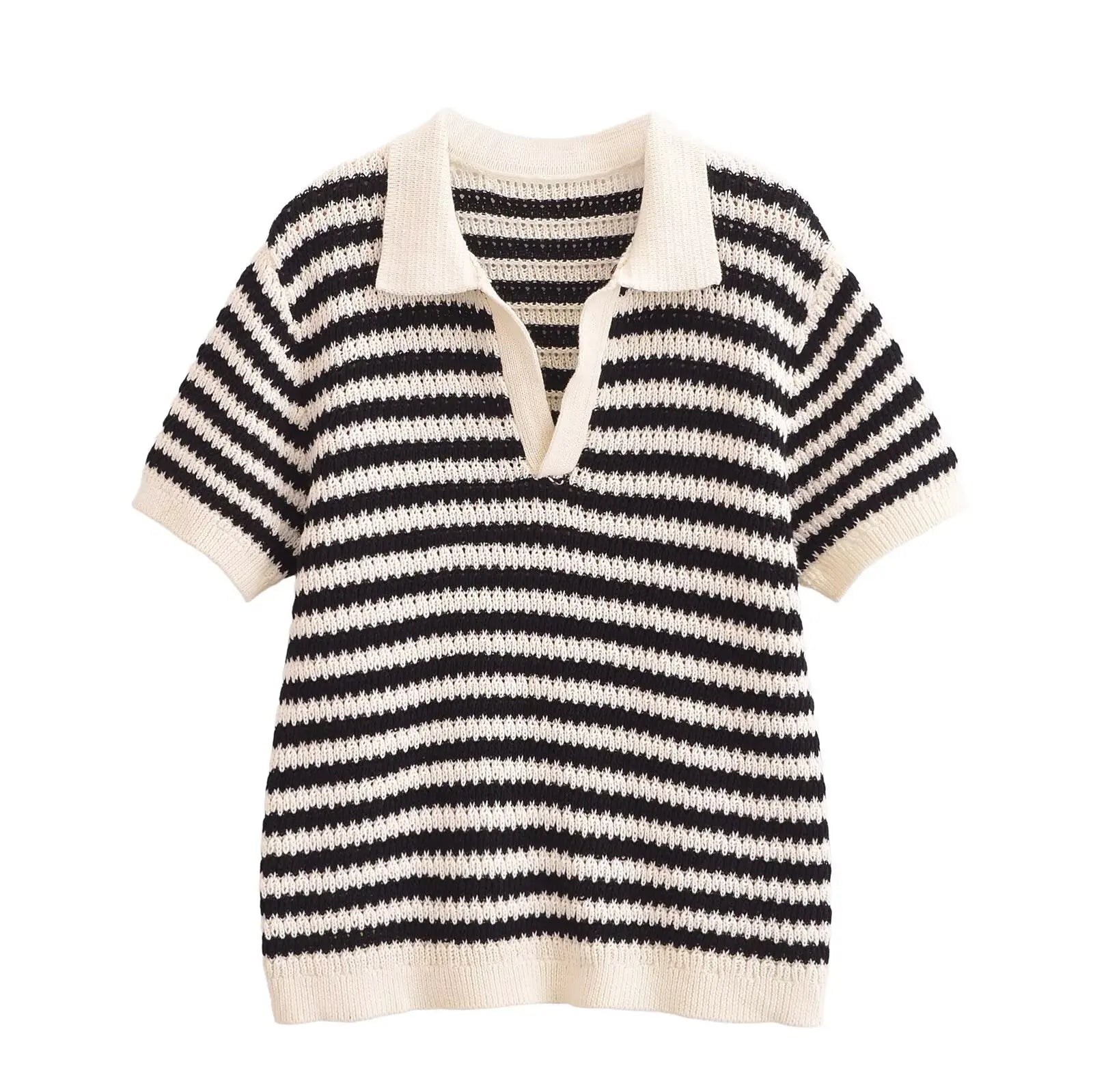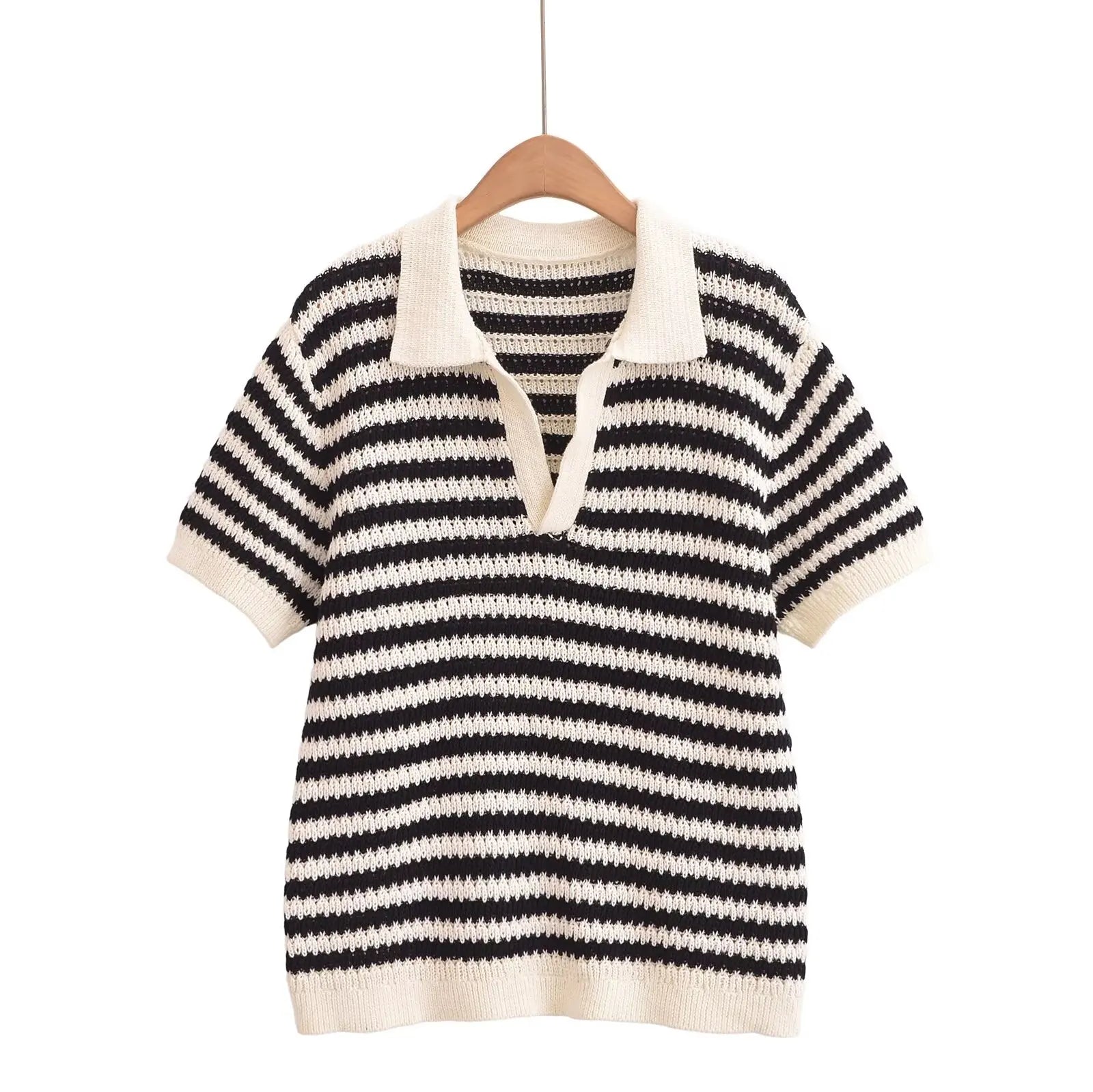 2025 Women’s Striped Knit Cotton T-Shirt Polo Collar Short Sleeve Casual Spring Summer Daily Street Weekend Wear