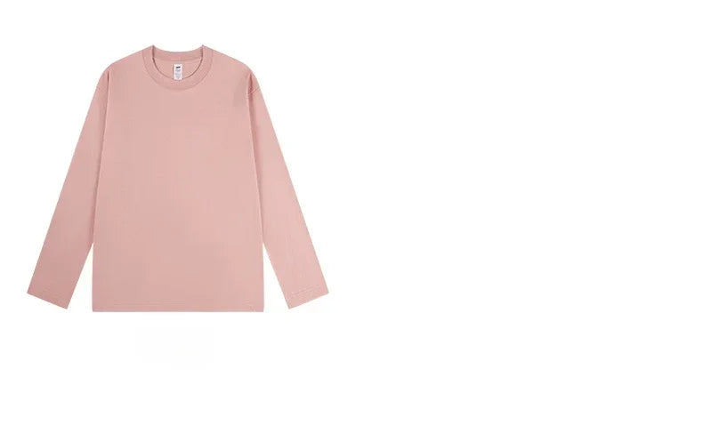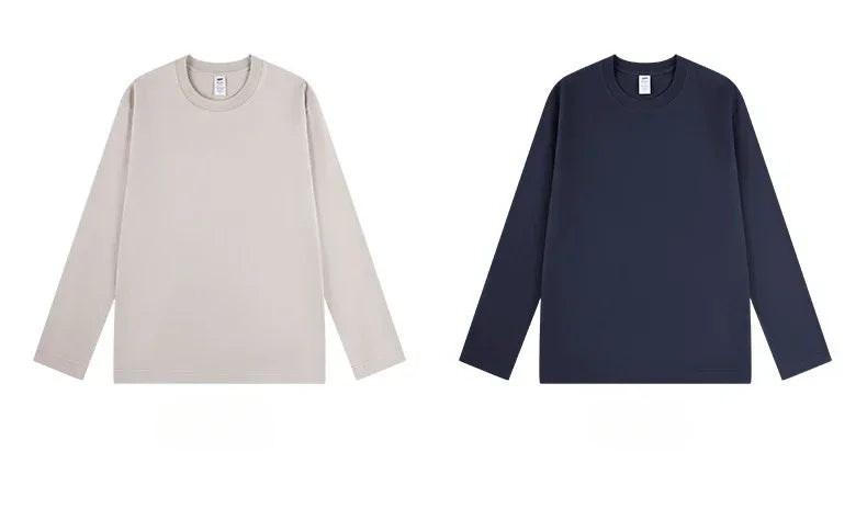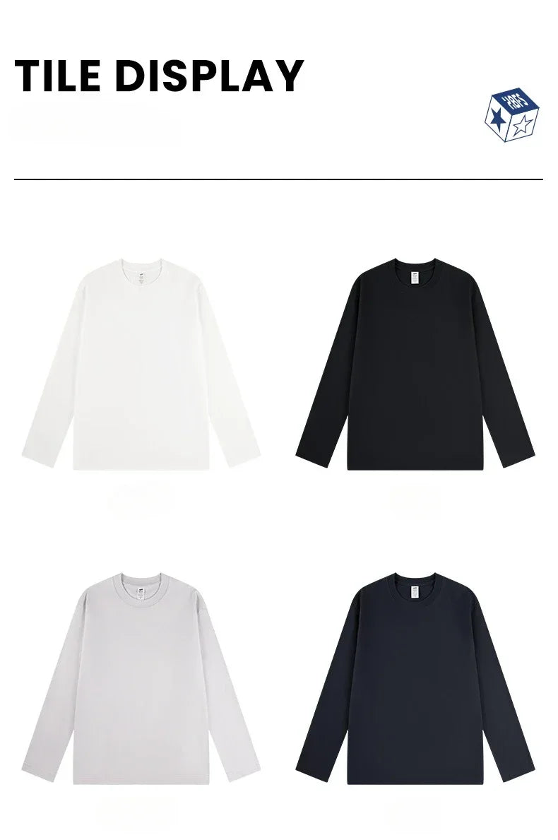 230G Men T Shirts Pure Combed Cotton Heavy Round Neck Solid Color Long-sleeved Men's T-shirt Loose Bottoming Shirt Tops For Male