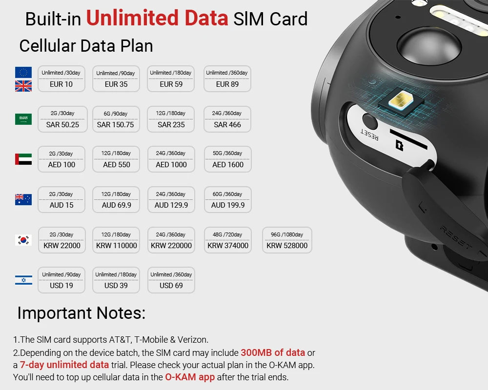 4G LTE Europe Band: FDD: B1/B3/B5/B8 TDD: B34/B38/B39/B40/B41