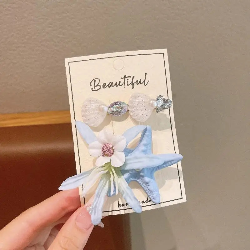 2PCS Kids' Fairy Starfish & Flower Hair Clips – Girls' Updo Alligator Clips, Bangs & Loose Hair Clips, Baby Hairpins, Hair Acces