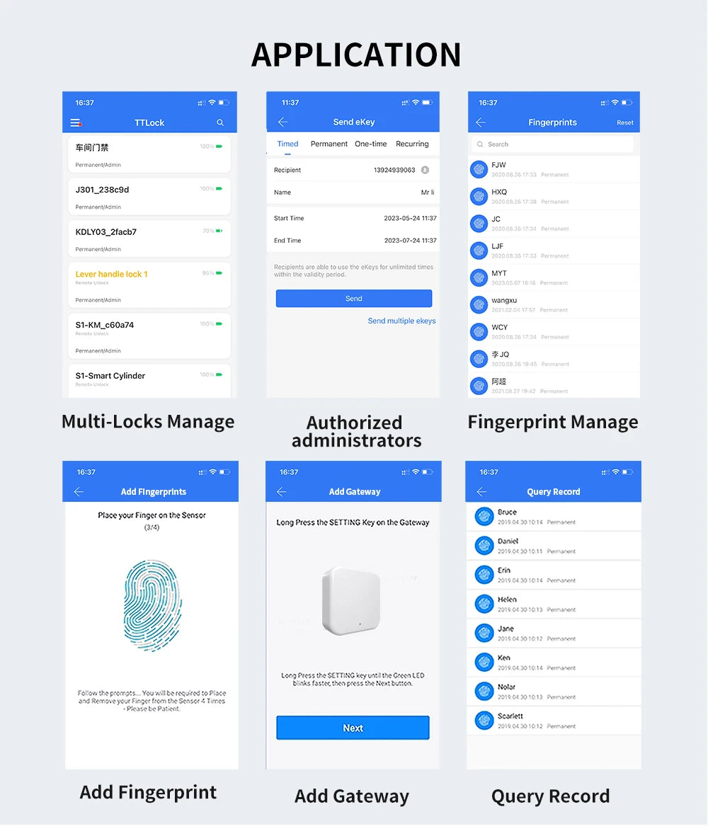 unlocking ways: Phone +Fingerprint + Password + Card + Key