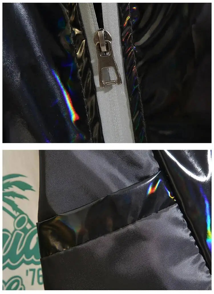 #4201 Black Sliver Shinny Jacket Men Bomber Jacket Korean Style Hip Hop Jacket Slim Men Jackets And Coats Streetwear Hooded Coat