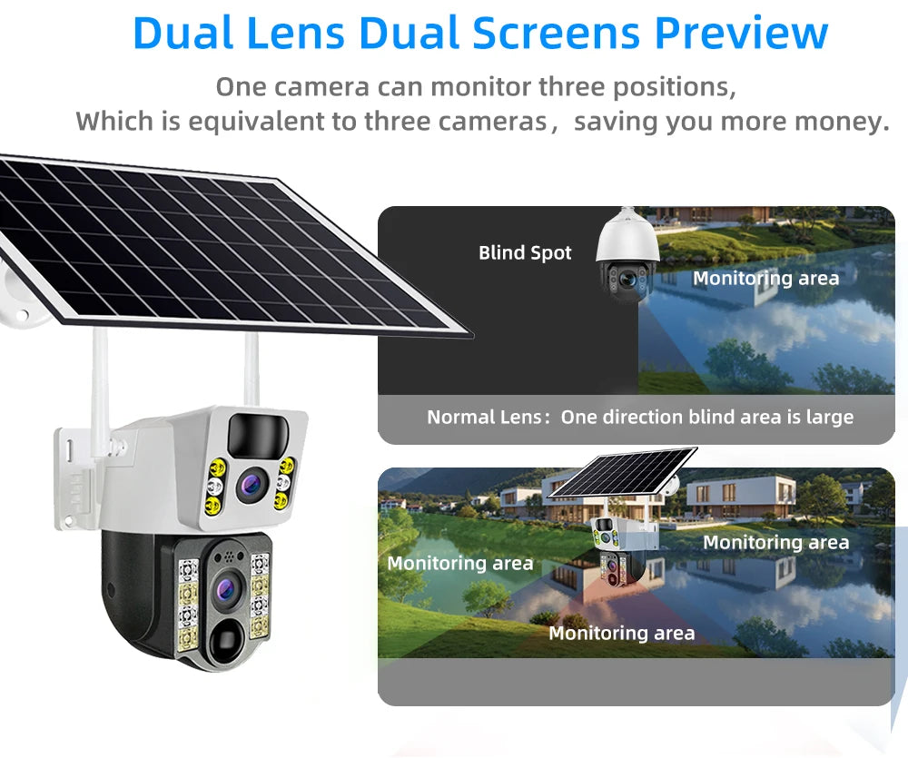 4K Solar Security Camera Outdoor Wireless 360° PTZ AI Human Detection IP66 Waterproof 8000mAh