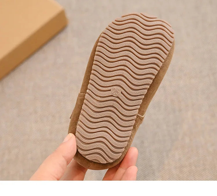 Children Flat Shoes Suede for Winter Kids Moccasins Non-slip Soft Sole 2024 Brand New Boys Girls Leather Shoes Warm Retro Trendy