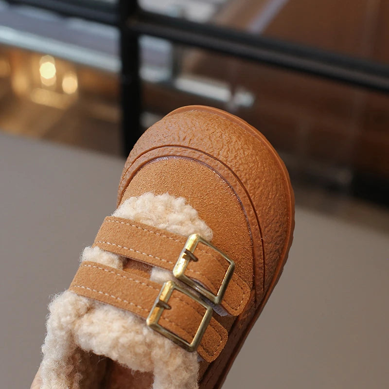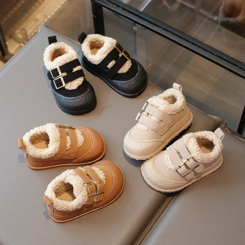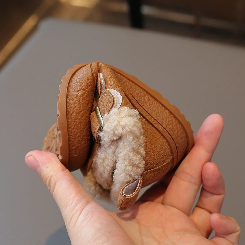 Children's Padded Shoes 0-6 Years Old Khaki Thickened Warm Boys Girls Walking Shoes Beige Soft Non-slip Kids Baby Cotton Boots