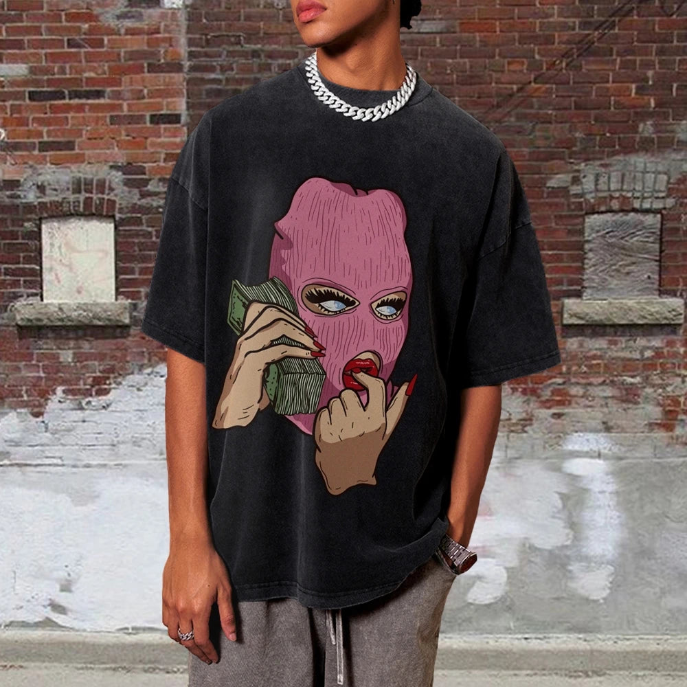 Cotton Women's T-Shirt Abstract Skull Call Women's Print Shoulder Round Neck Wash Summer Designer Trend New Short Sleeves