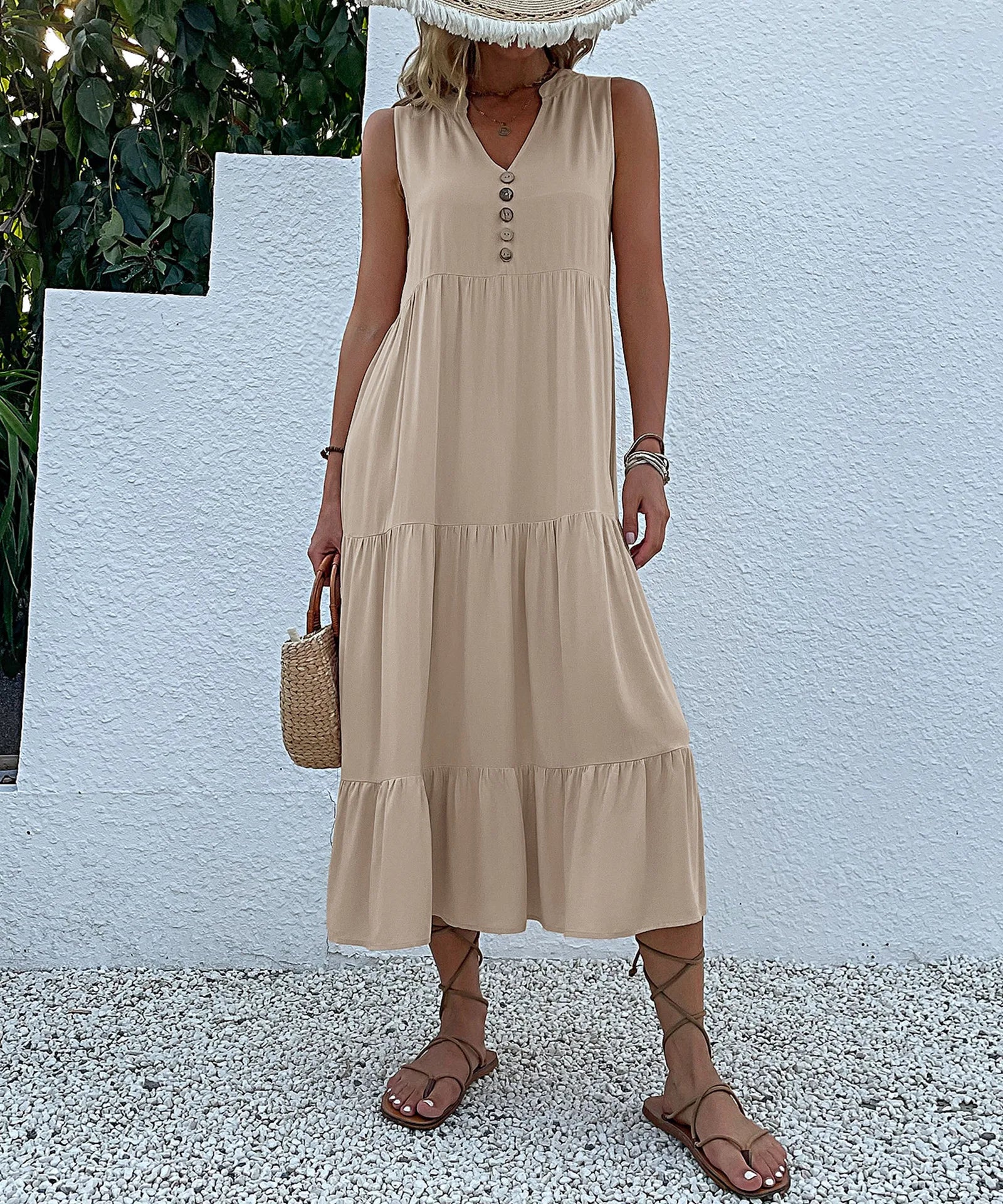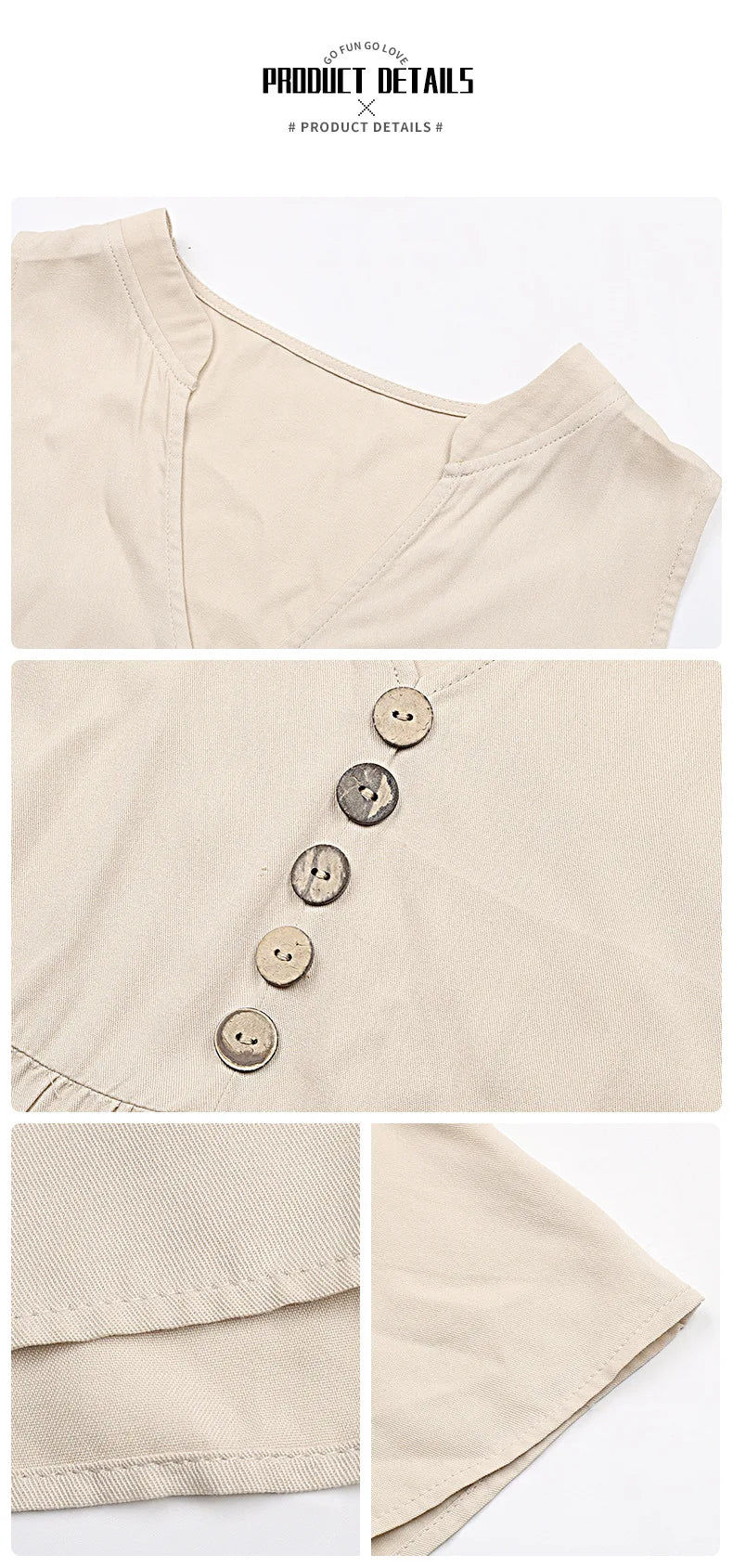 Dresses for Women 2025 Summer V-neck Single-breasted Vest Dress Sleeveless Loose Casual Solid Color Dress Vestidos De Mujer