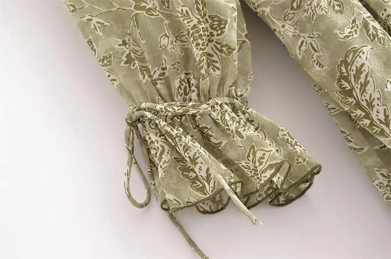 Dresses Women's 2025 New Spring Chiffon Print V-neck Chic Slim Long Dress Fashion Elegant Holiday Street Women's Dress