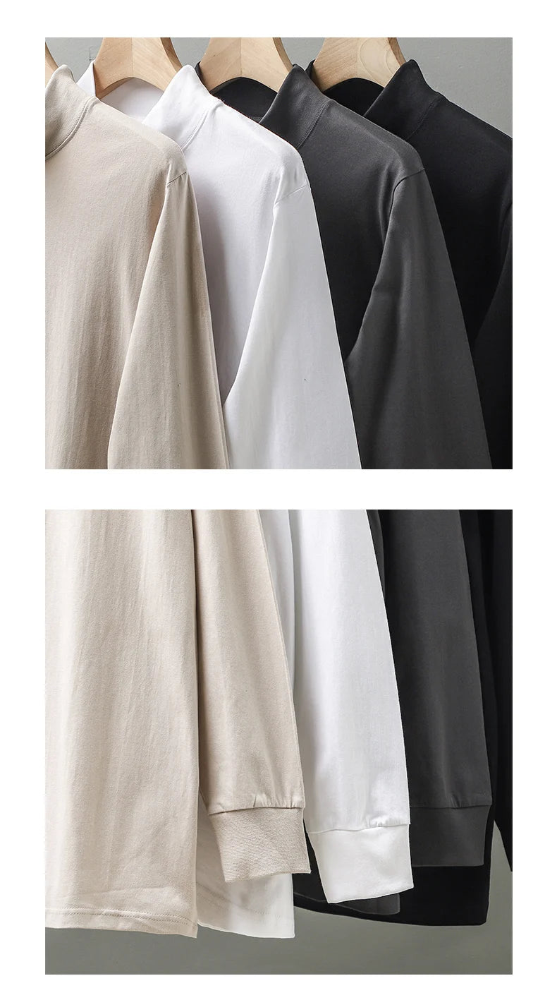 Dukeen 270G Heavyweight Half-Turtleneck Long-Sleeve T Shirts for Men Autumn 100% Cotton Solid Color Undershirt Men's Clothing