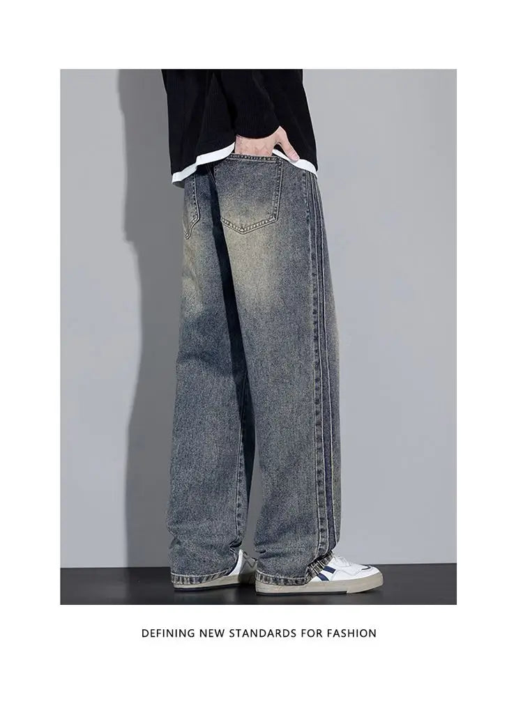 Elastic Loose Straight Jeans Men's Wide Legged Denim Pants Casual Trousers Korean Style Sportswear Clothing Jeans Men Pants