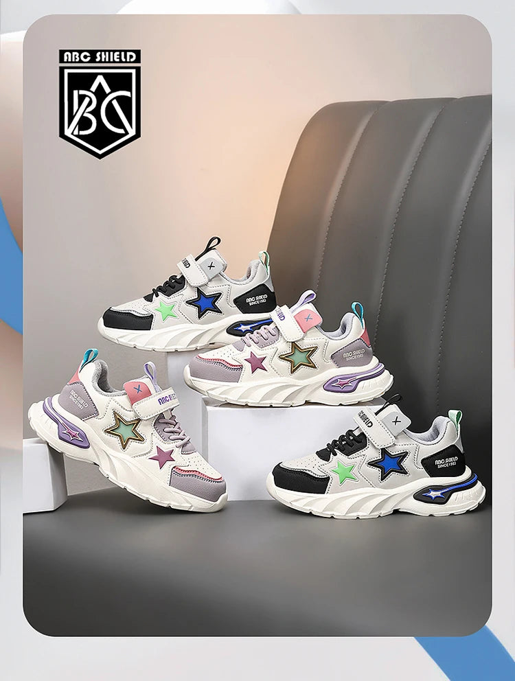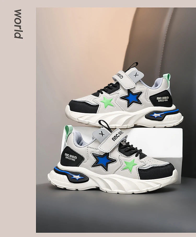 Fashion children's sports shoes boys and girls sports shoes 4 to 10 years old college wind PU leather shoes outdoor casual shoes