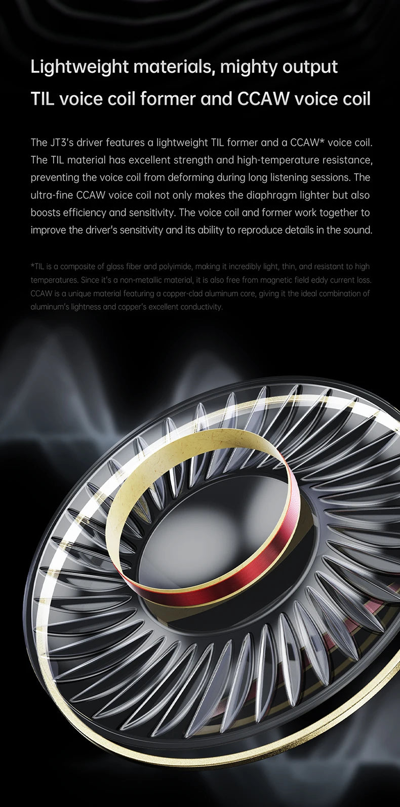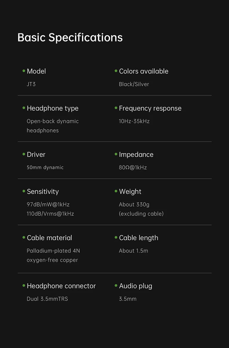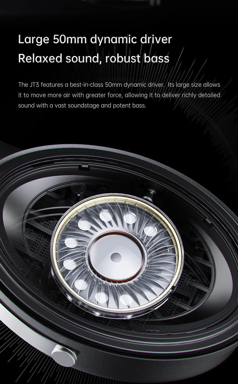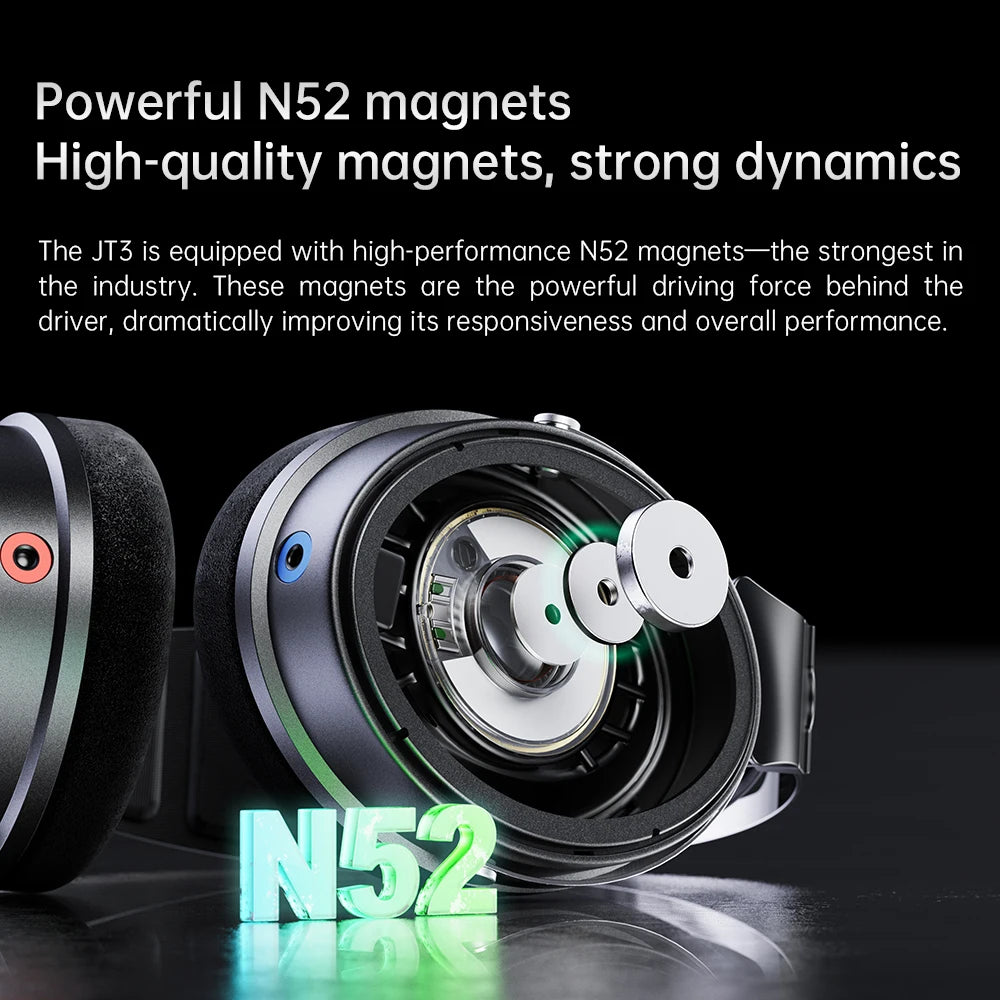 FiiO JT3 Over-Ear Open-Back Headphones, 50mm Dynamic Driver, PEK+PU Composite Diaphragm, Detachable 3.5mm Cable with Mic