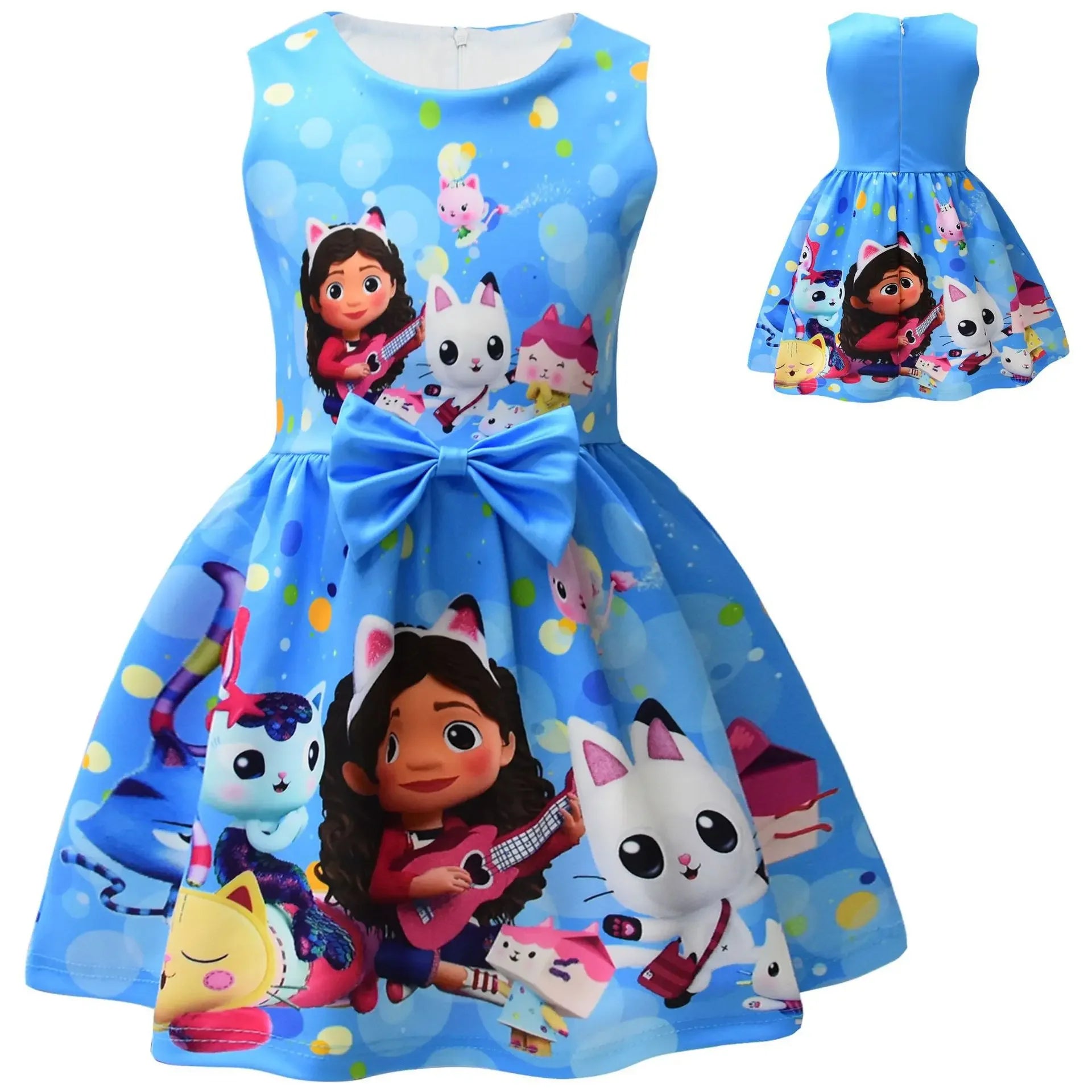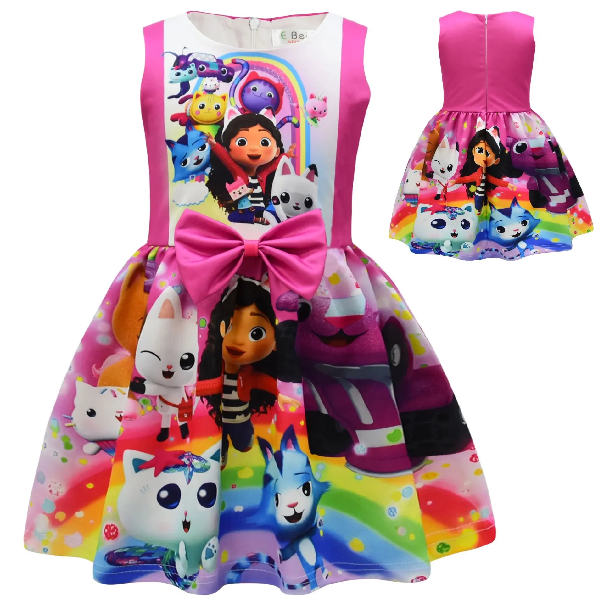 Gabby's Dollhouse Kids Clothes Summer Baby Girls Cute Princess Dress Cartoon Gabby Cats Toddler Girls Birthday Party Dresses