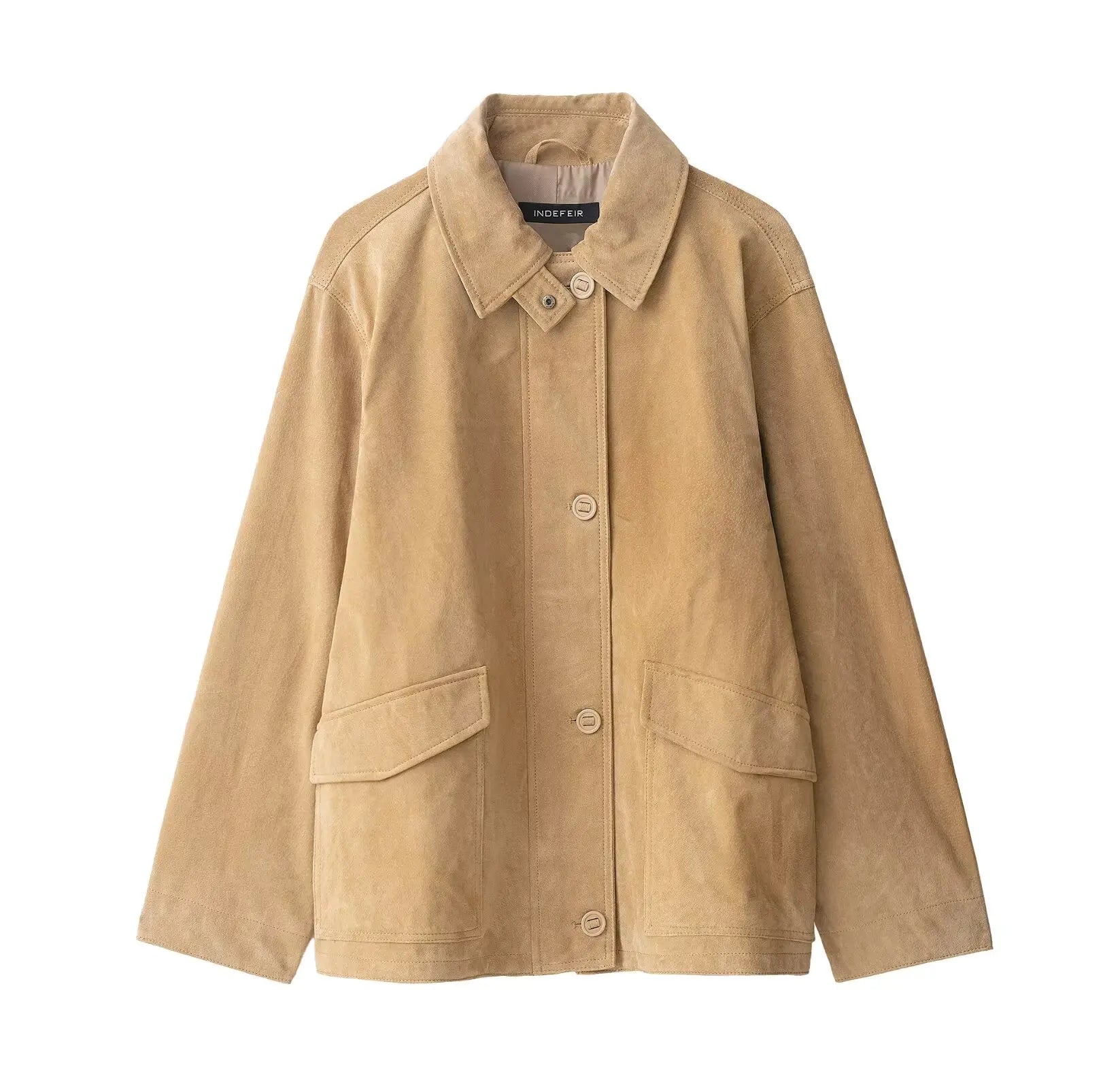 HH Woman's Fashion Jackets Solid Turn-Down Collar Long-Sleeved Pockets Single-Breasted Female Autumn Casual Loose Coats
