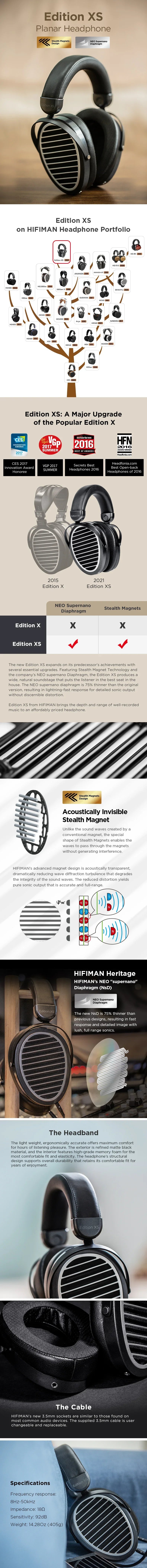 HIFIMAN Edition XS Hi-Fi Headphones Full-Size Over-Ear Open-Back Planar Magnetic with Adjustable Stealth Magnets Design