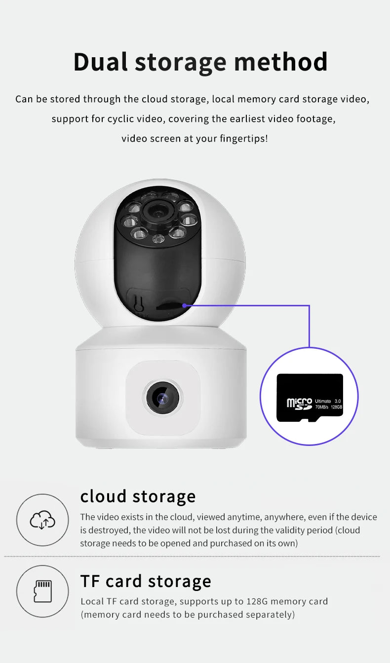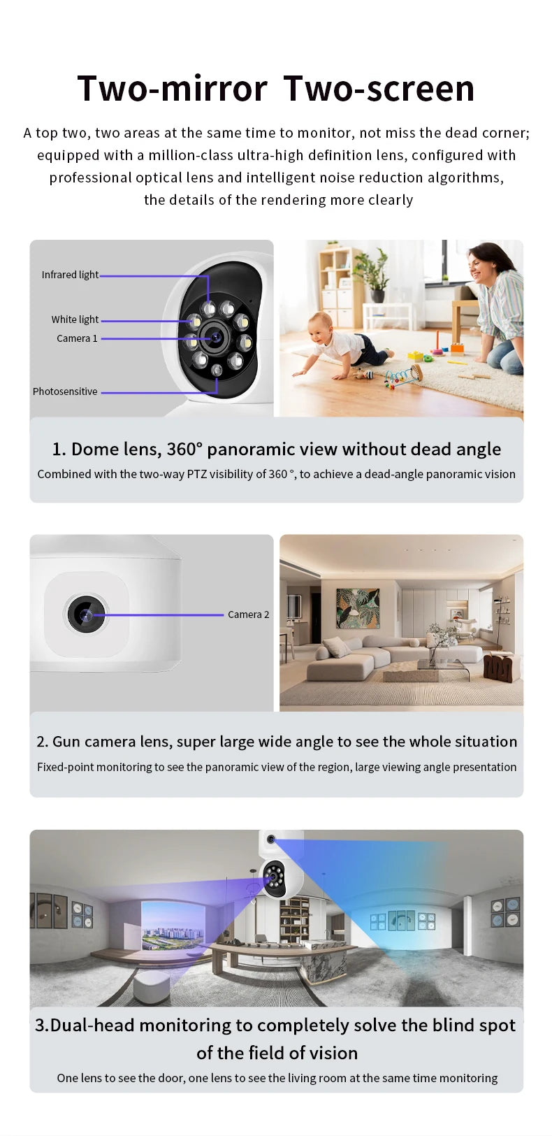 Home Security Camera 1080P Dual Lens WiFi Indoor Outdoor Night Vision Motion Detection Two Way Audio Waterproof Cloud Storage