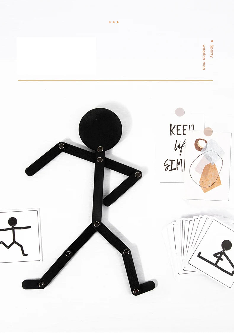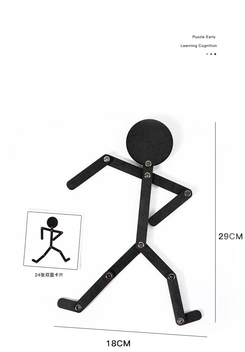 Kids Montessori Toys Wooden Early Learning Educational Puzzles Sporty Pose JigsawImprove Hands-on Skill Busy Board Gifts