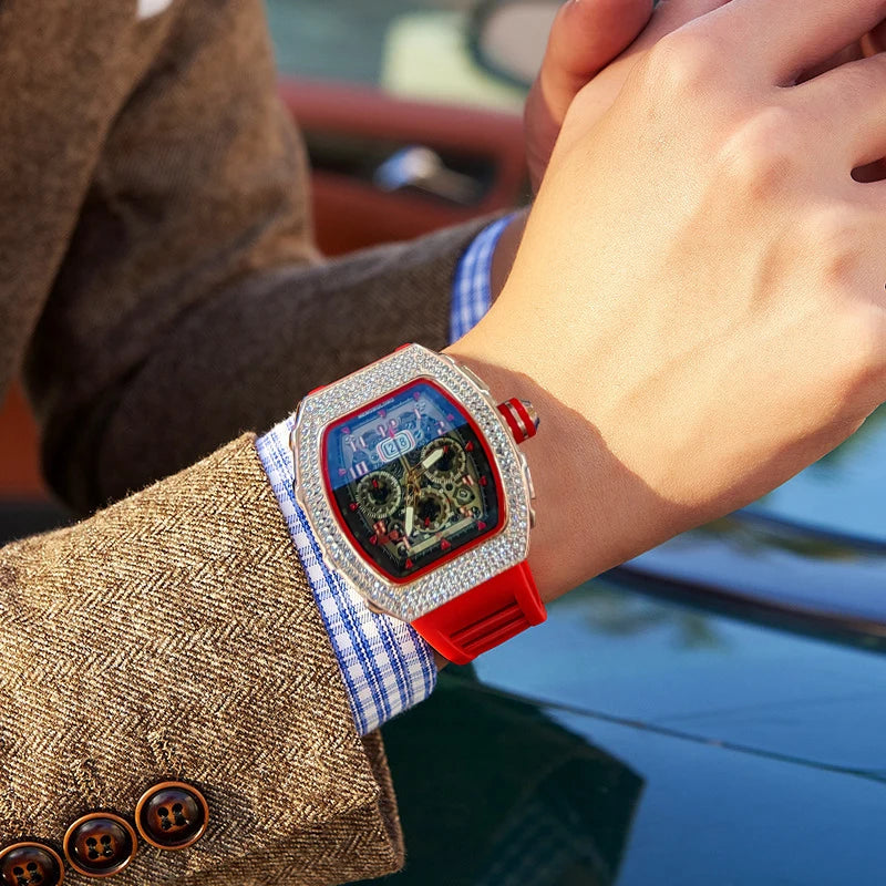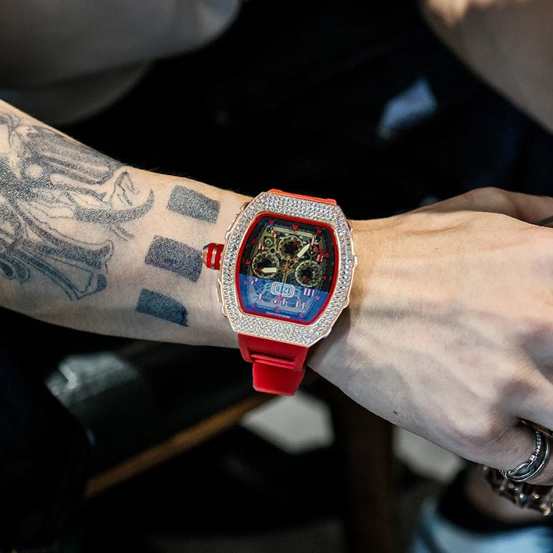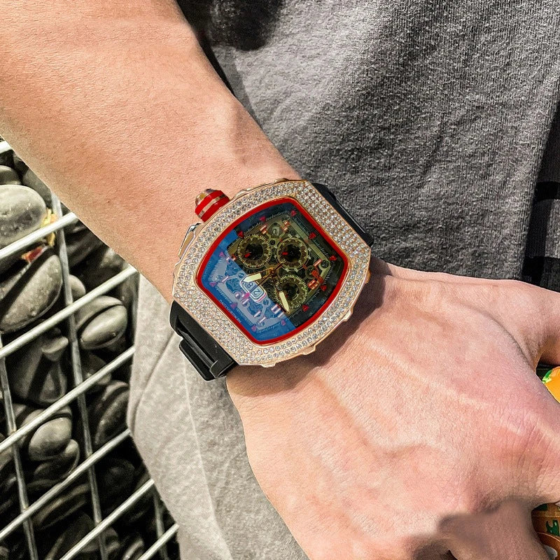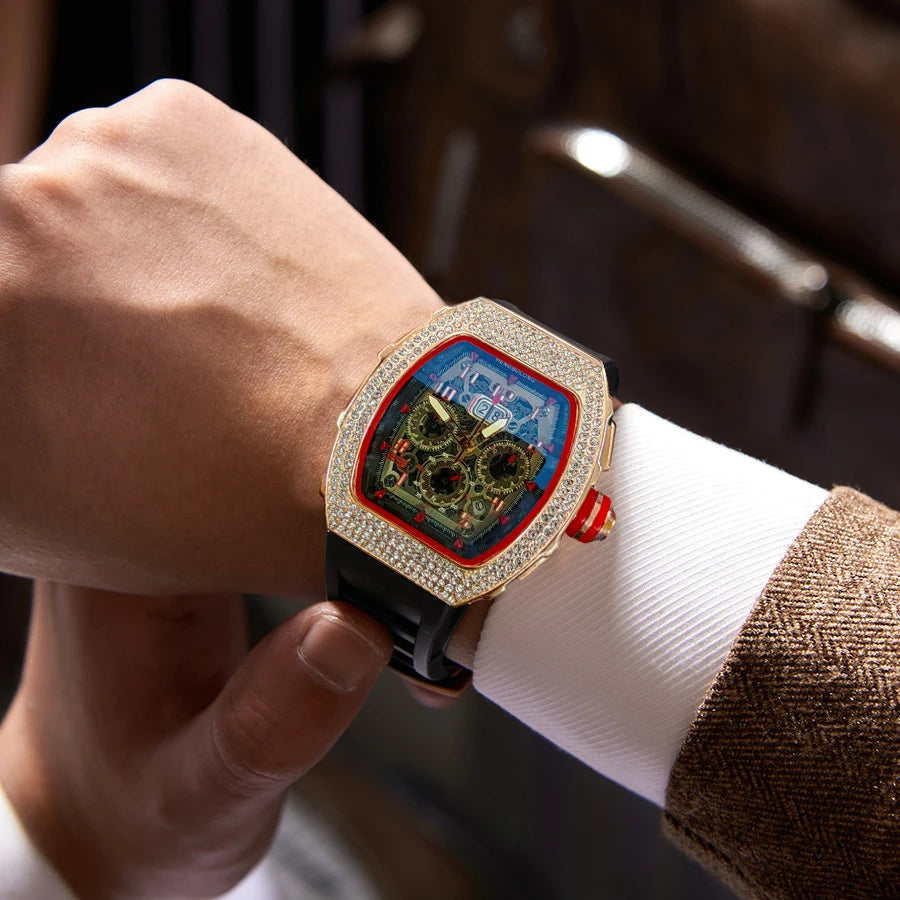 New Men's Hengbo Long European and American Hollow Star Diamond Fashion Barrel-Shaped Three-Eye Six-Hand Business Quartz Watch