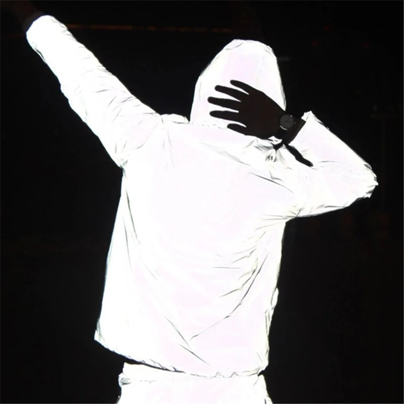Night Flash Couple Jackets Oversized: Hooded Reflective Jacket Men