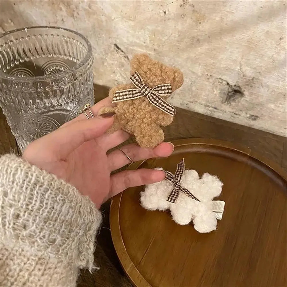 New Toddlers Kids Bear Hair Clips Hairpins for Children Baby Handmade Girls Hair Accessories Autumn Winter Cloth Barrettes