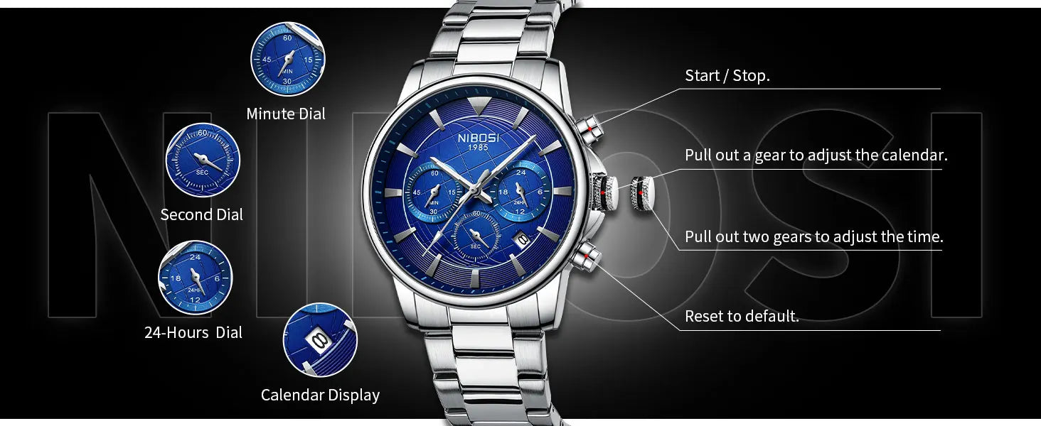 NIBOSI Mens Watches Analog Dainty Business Dress Watches for Men Military Chronograph Watch with Calendar Waterproof Stainless