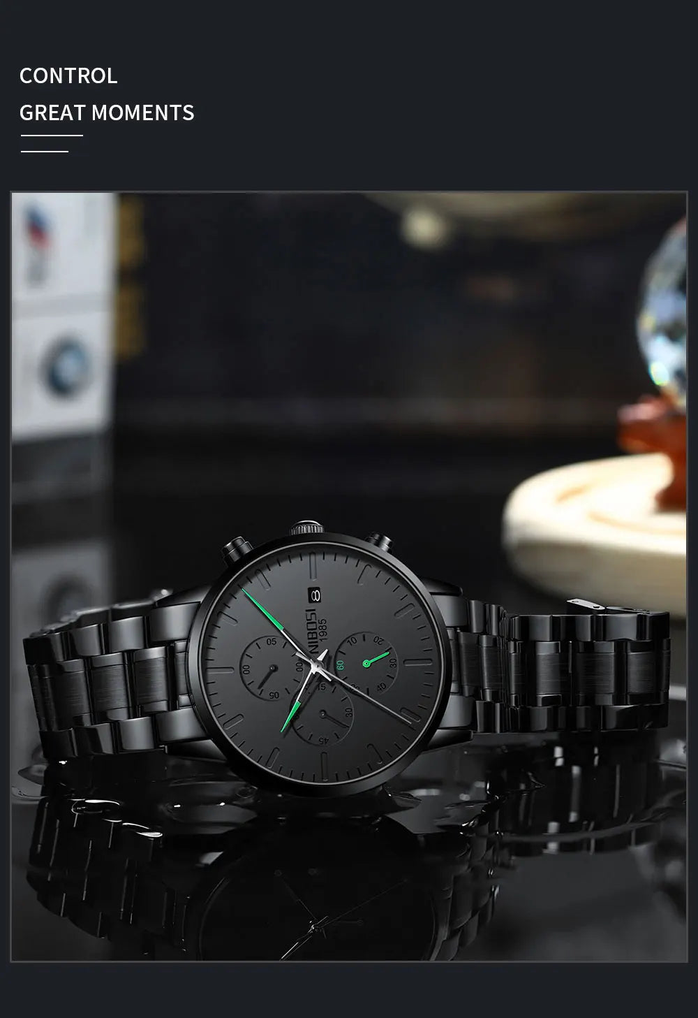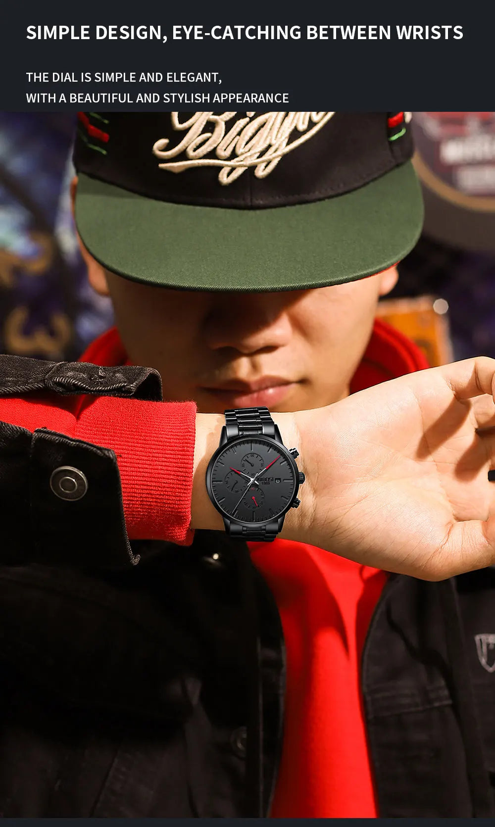 NIBOSI Men's Watches Analog Minimalist Black Dial Watch for Men Business Chronograph Military Casual Wristwatch Stainless Clock