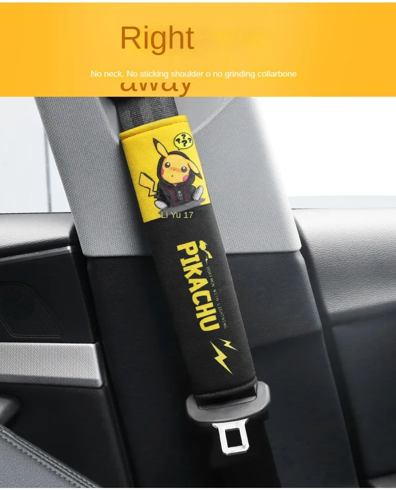 Pokemon Pikachu Car Accessories Seat Belt PU Leather Safety Belt Shoulder Cover Breathable Protection Seat Belt Car Accessories.