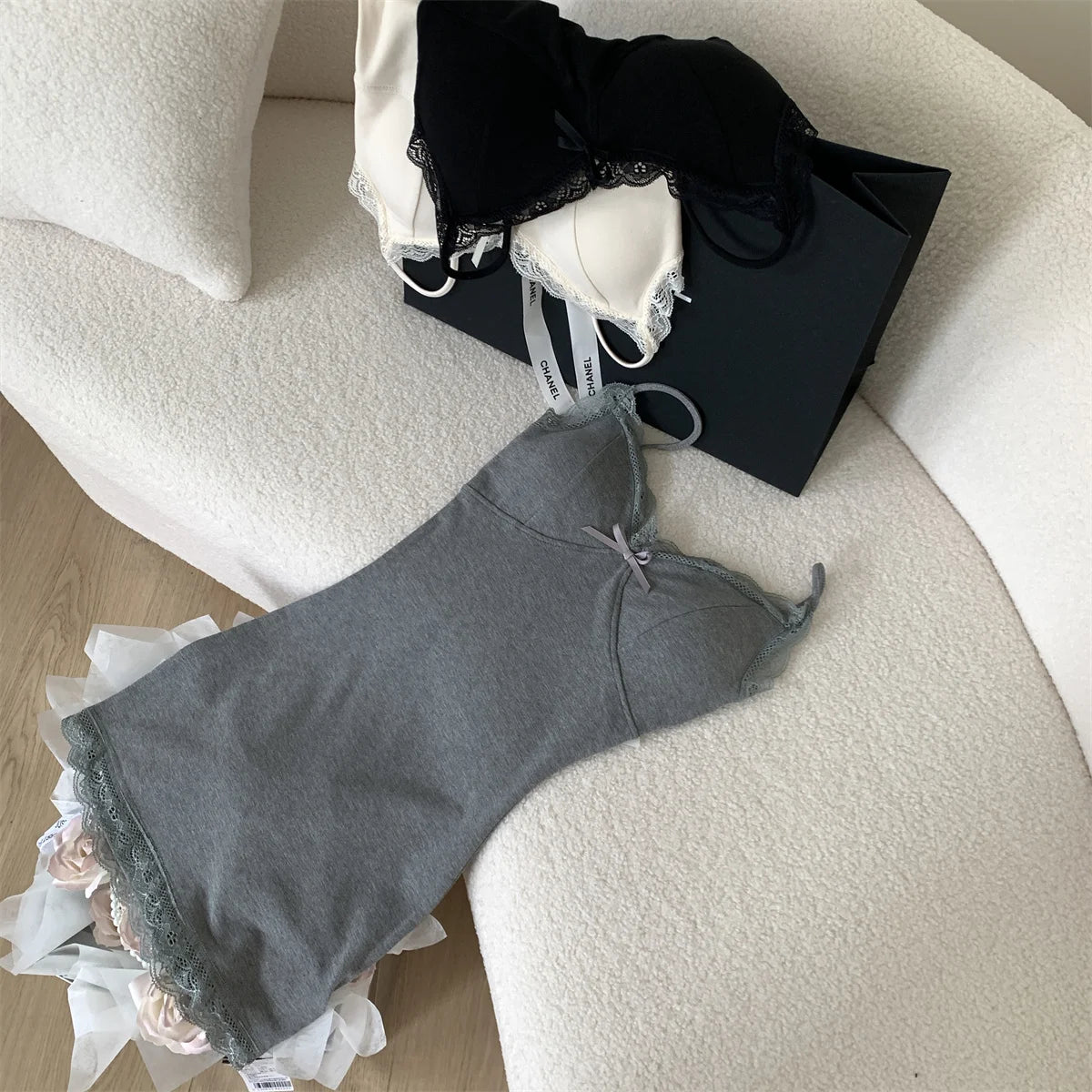 Sleeveless Dresses for Women Sexy Lace Hot Female Bodycon Dress Korean Fashion Mini Vestidos with Chest Pad Inner Wear Clubwear