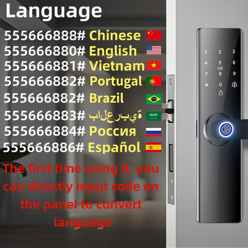 Smart Electronic Door Lock Fingerprint Biometrics Application Control Smart Card Key Access and USB Emergency Charging Smartlock