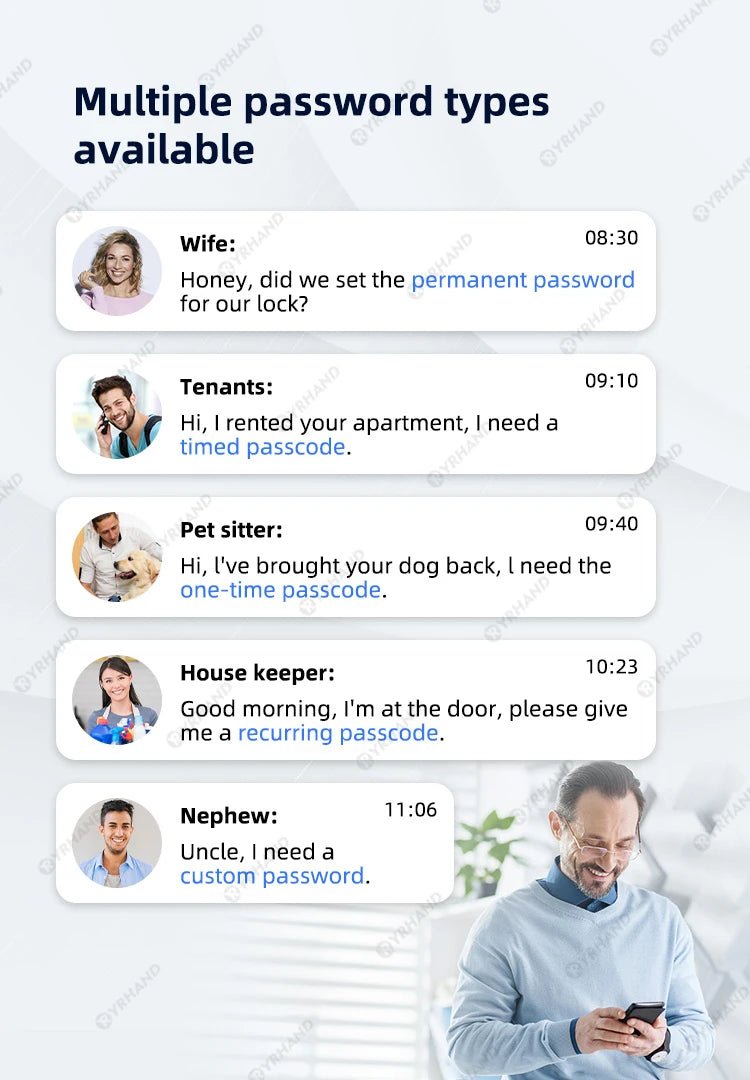 Ways To Unlock: Card,Mechanical Keys,Password,FINGERPRINT,App,App,REMOTE CONTROL,Bluetooth,Mechanical Keys,Card,Password,FINGERPRINT