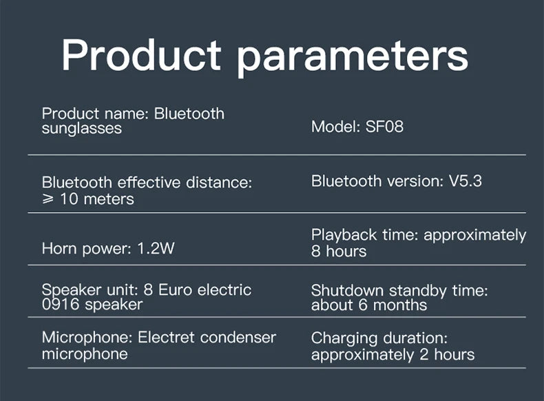Smart F08 Sunglasses Glasses Bluetooth5.3 Outdoor Sports Headphones Waterproof Anti-UV Headset For Men Women