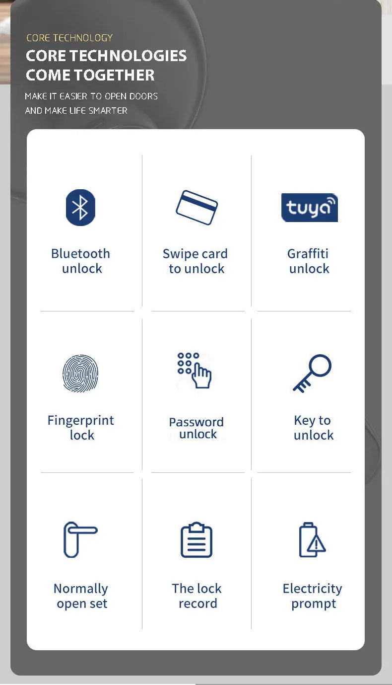 Ways To Unlock: Card,FINGERPRINT,Password,Mechanical Keys,Bluetooth,App