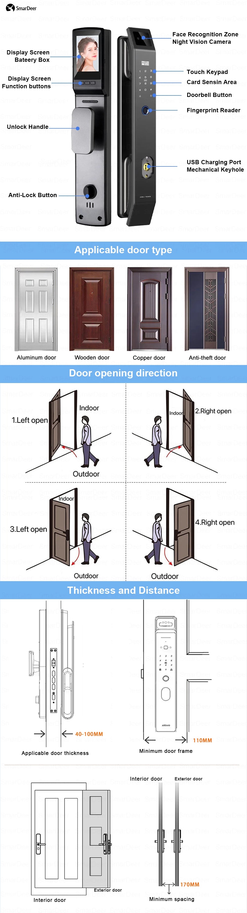 Ways To Unlock: Card,FINGERPRINT,Mechanical Keys,Password,App,Face Recognition,WiFi