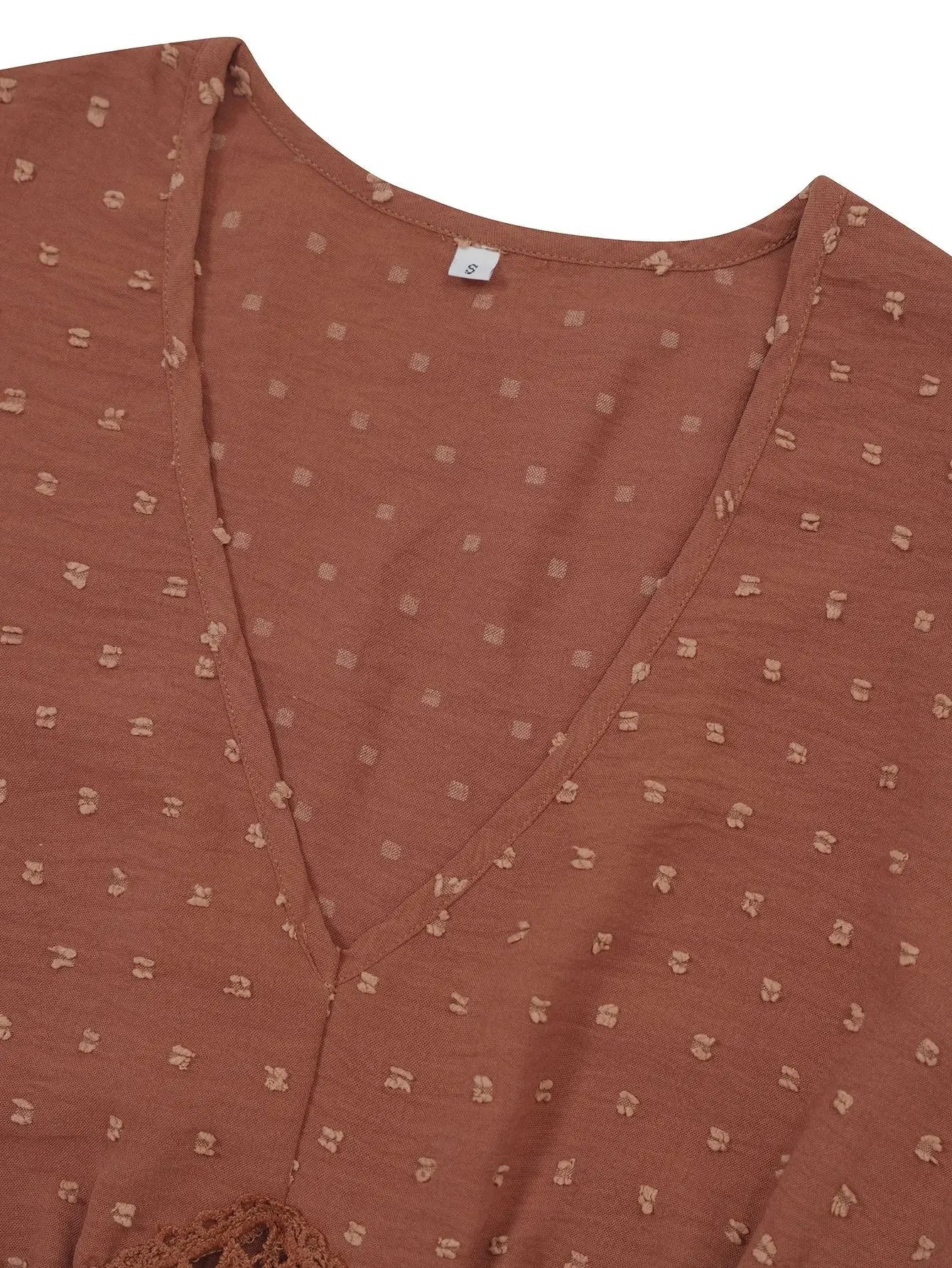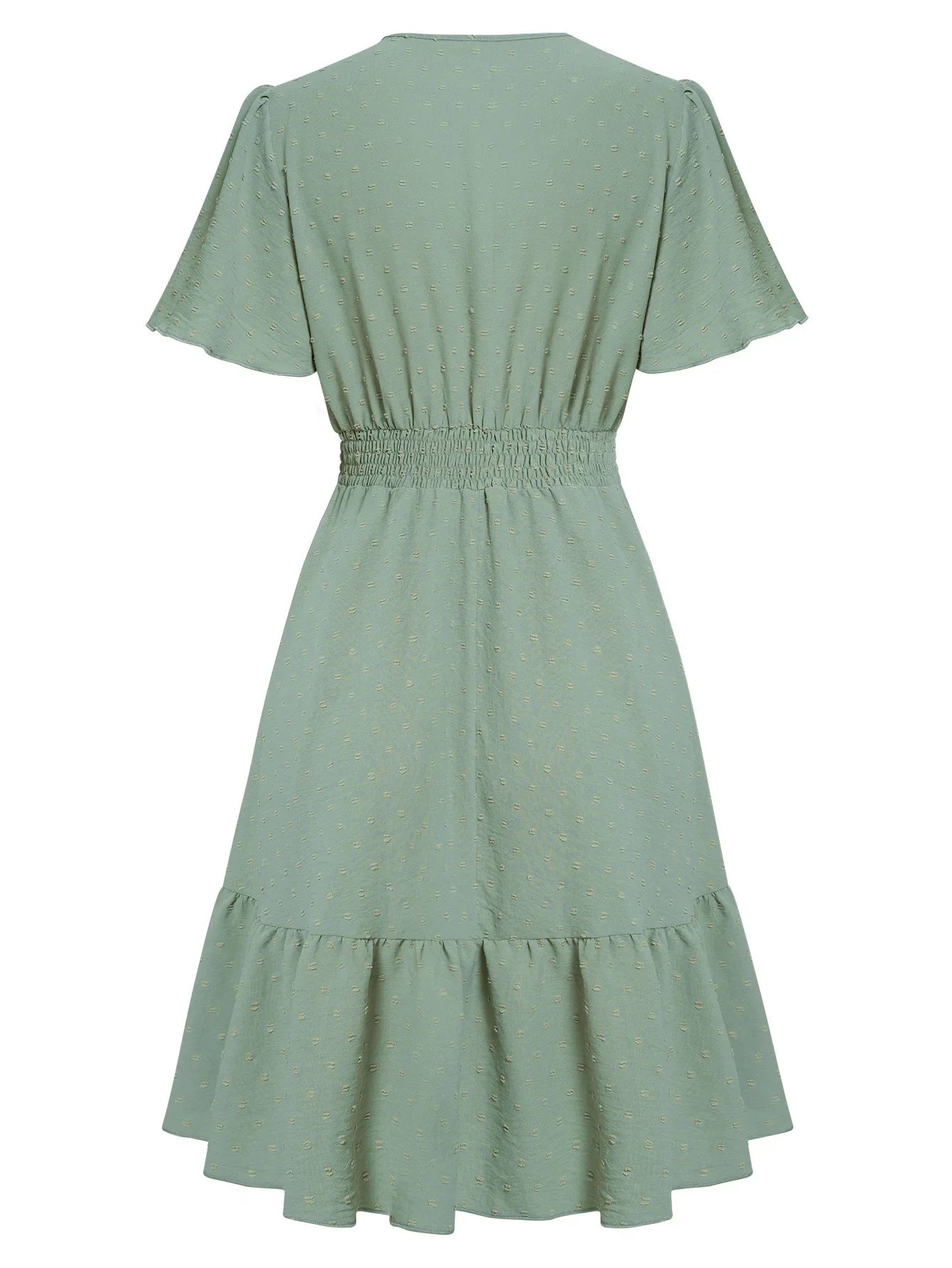 Summer Womens Dresses 2025 Solid Color V-neck Waist Ruffle Sleeve Knee Length Swing elegant party Dress Casual Holiday Vestidos