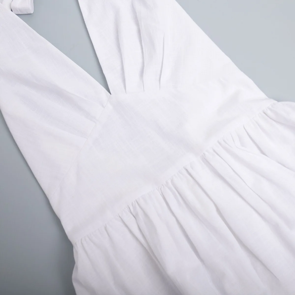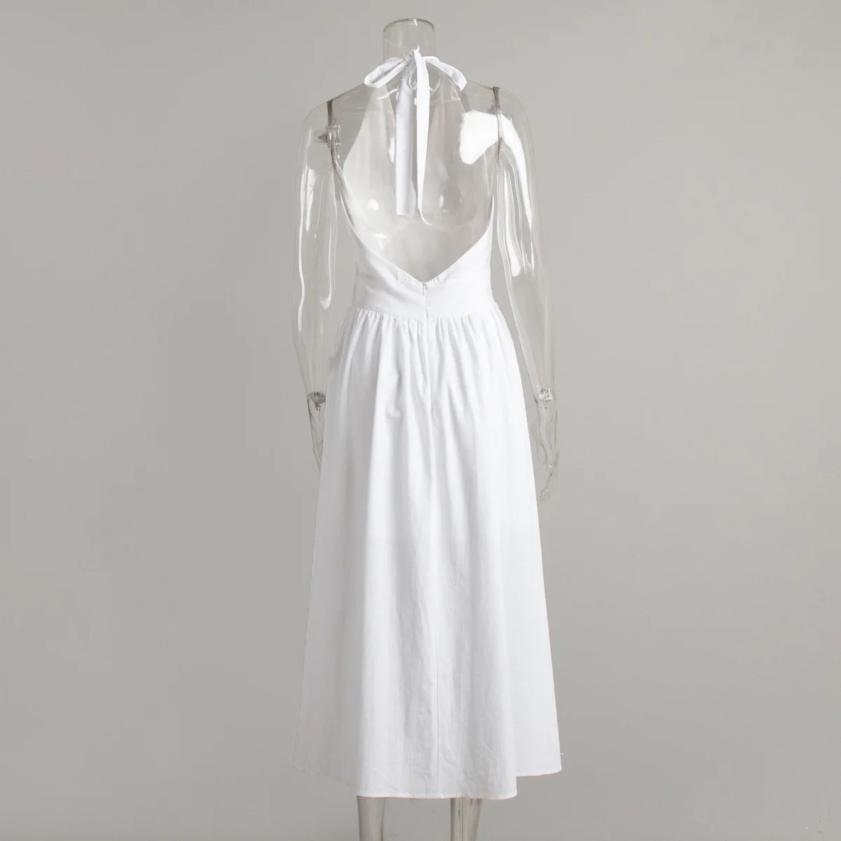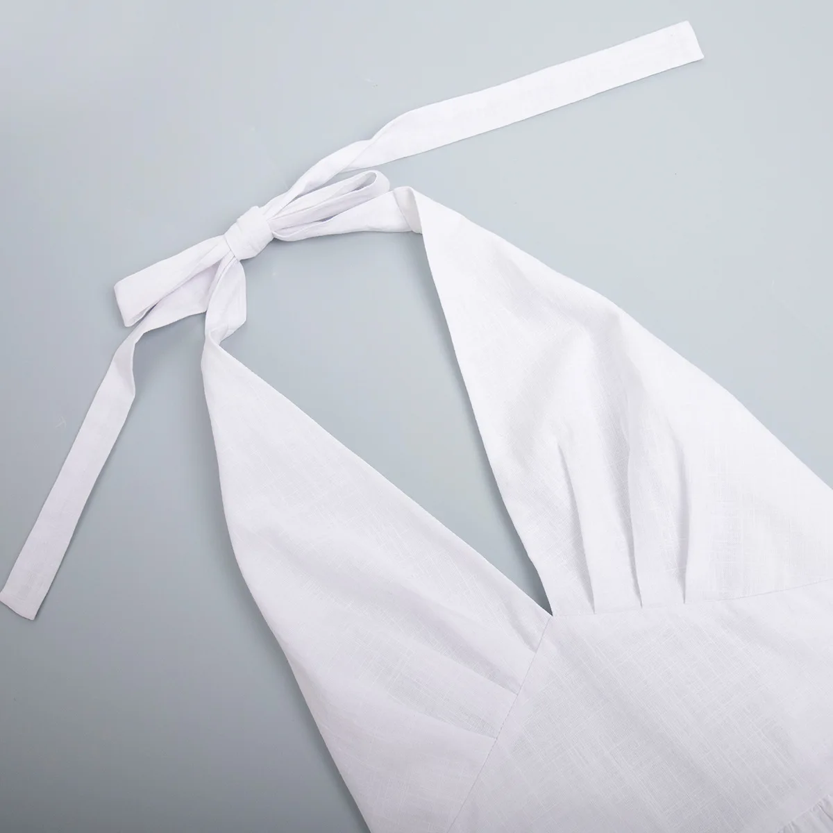 Talenza Spring V-Neck Long Dress Women White High Waist Slim Backless Lace-up Beach Holiday Dress Sleeveless Casual Female Dress