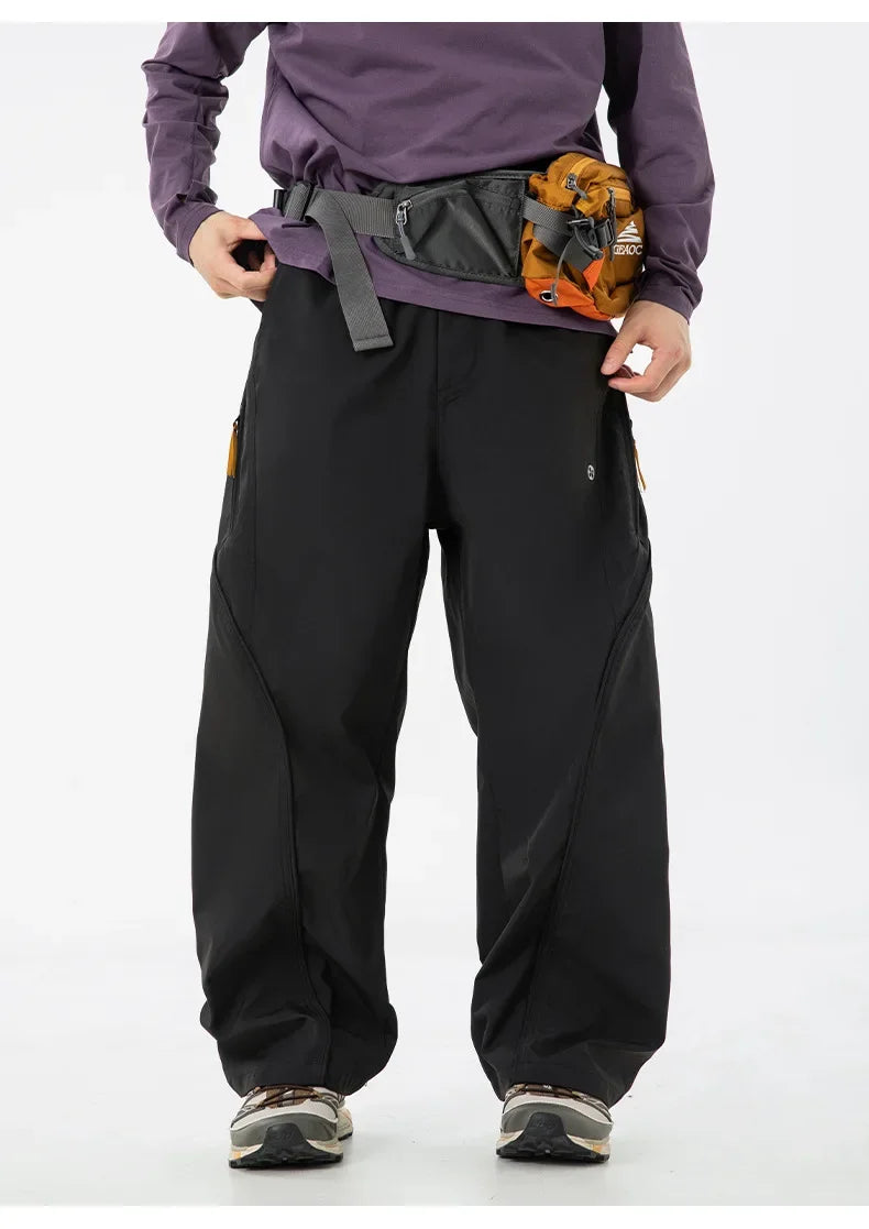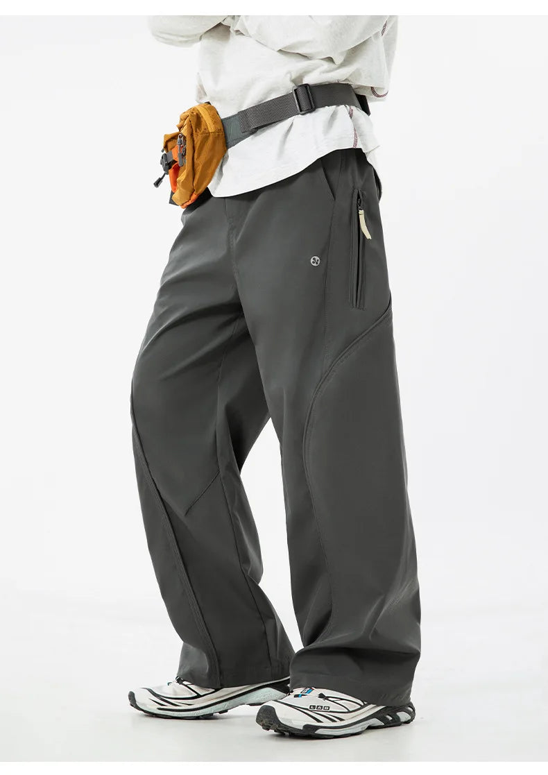 TFETTERS Autumn New Zipper Pocket Men Pants Drawstring Elastic Waist Pants Men Fashion Stitching Design Trouser for Men Clothes