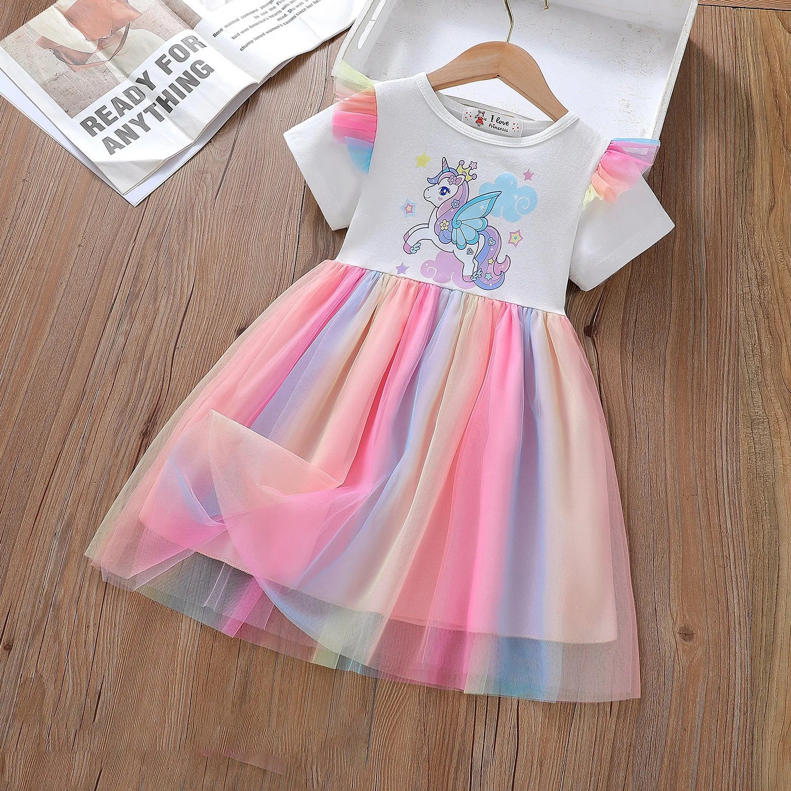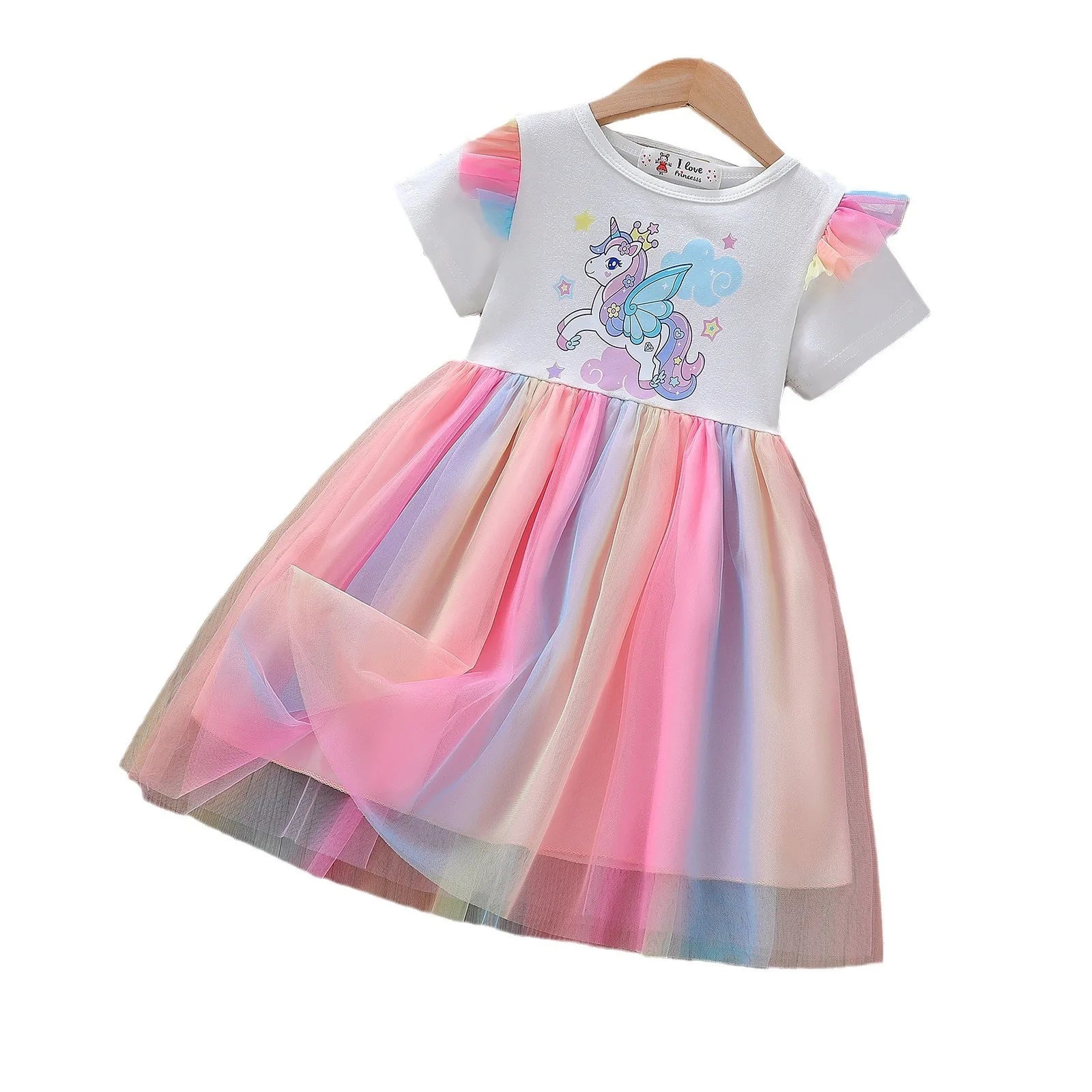Unicorn Girls Dress 2025 New Kids Clothes Summer Short sleeve Princess Dresses Party Baby Dresses for Children Rainbow 2-8Y