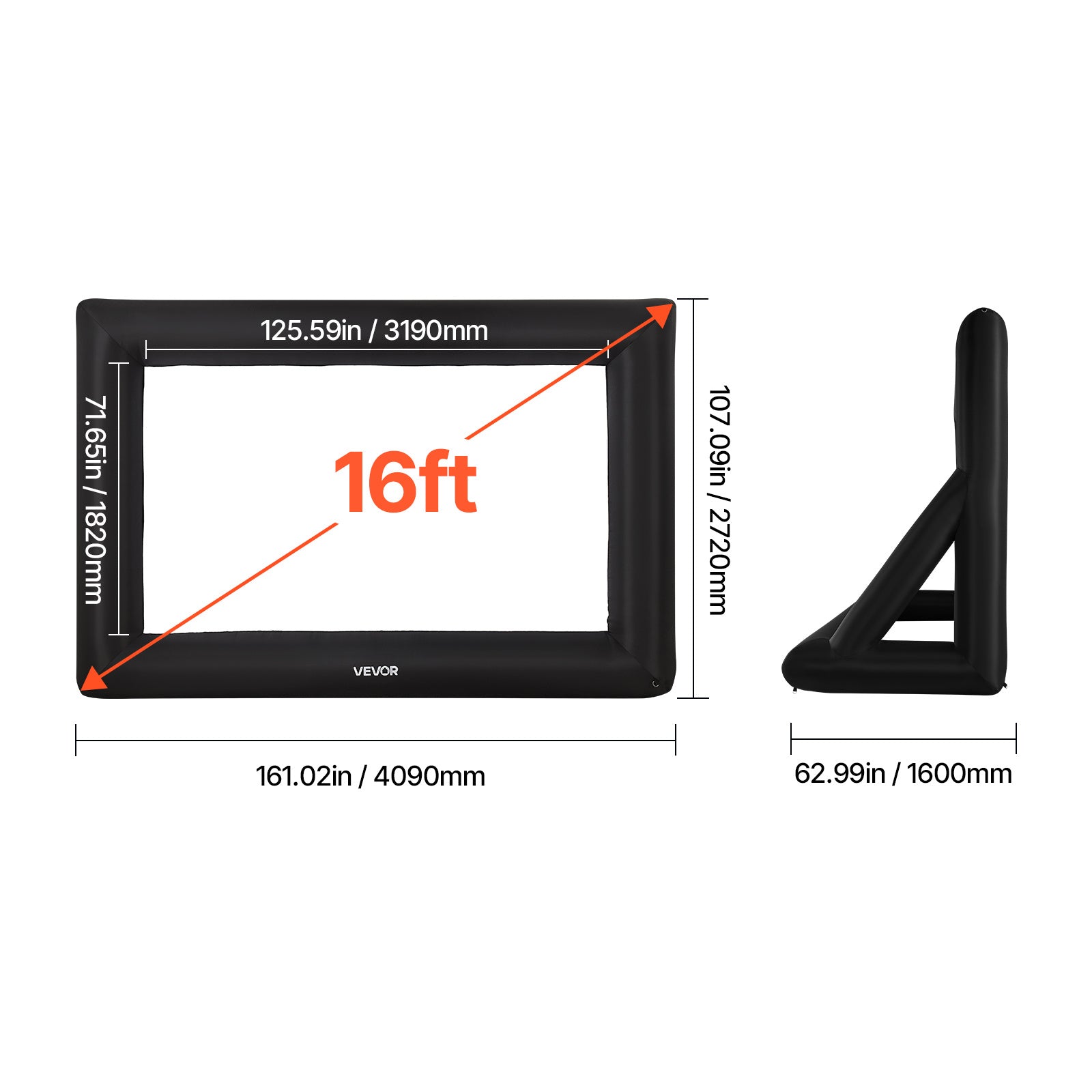 VEVOR 14/16/20FT Inflatable Projector Screen, Inflatable Movie Screen Outdoor with 120/250W Air Blower Projector Screen Oxford Fabric Material Blow Up Screen for Outdoor Backyard, Home Theater, Theme Party