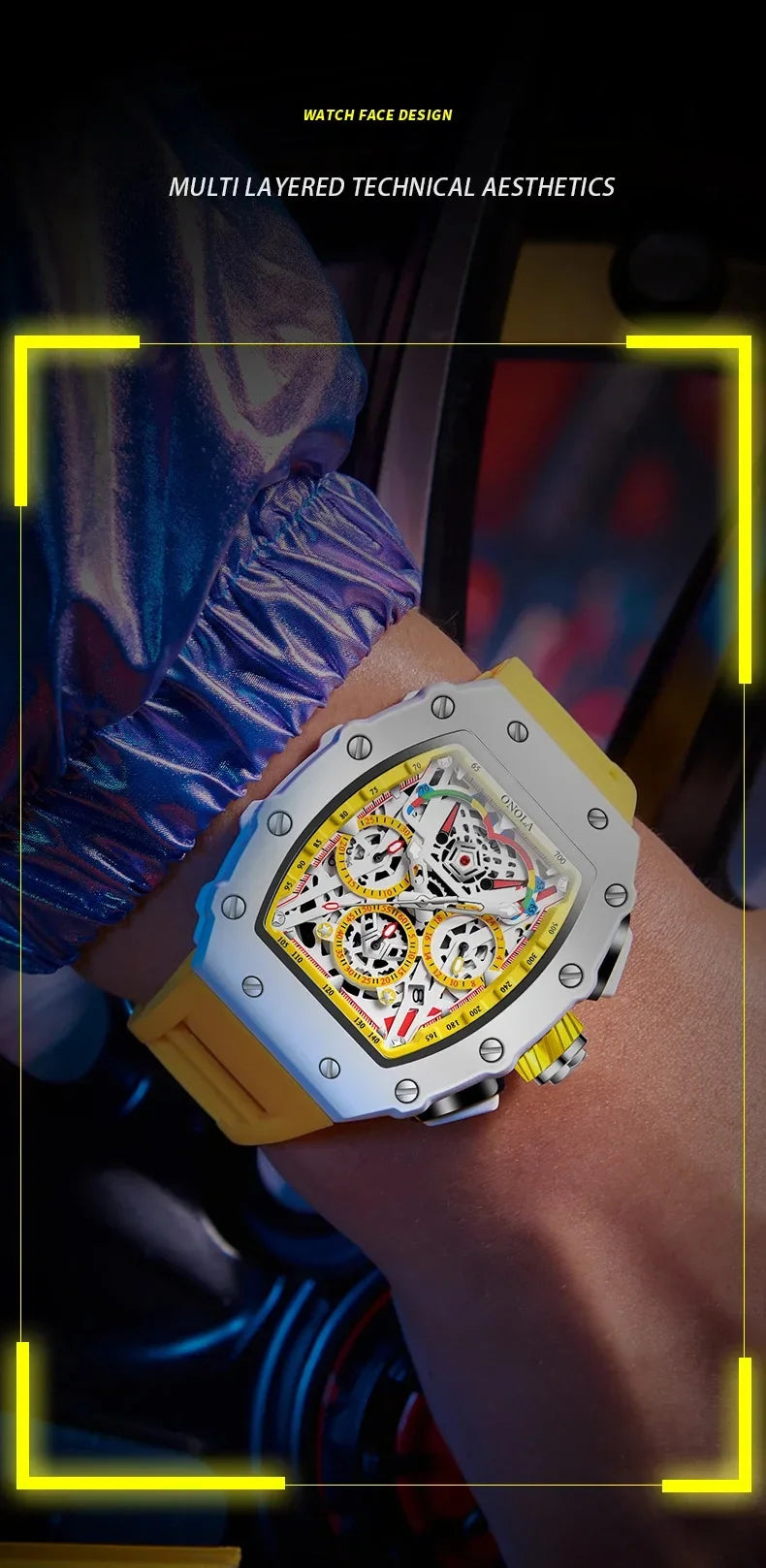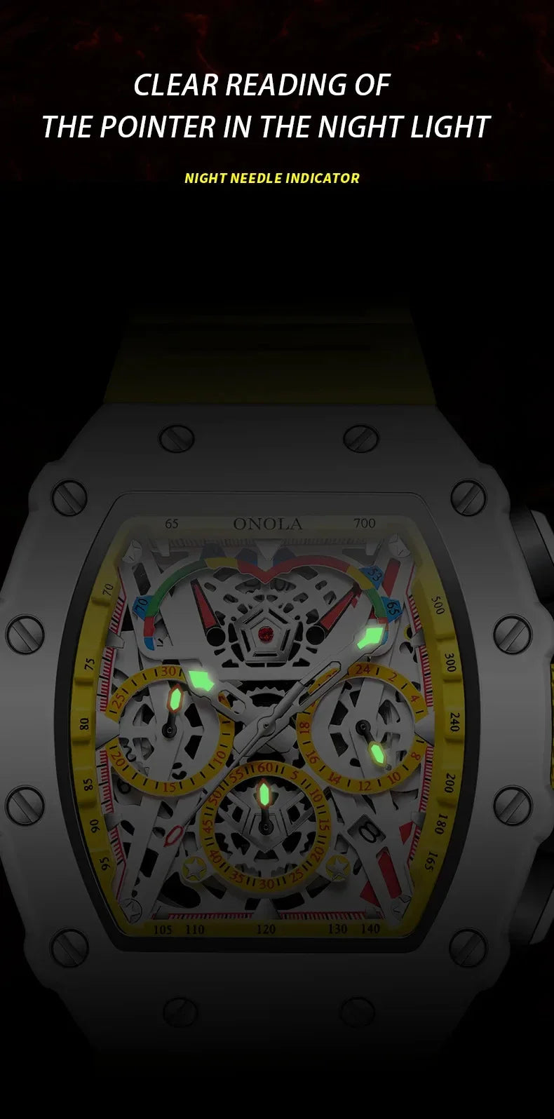 Watches for Man ONOLA 6827W Trend White Men Watch Waterproof Chronograph Quartz Wristwatch Sports Silicone Strap Reloj Hombre