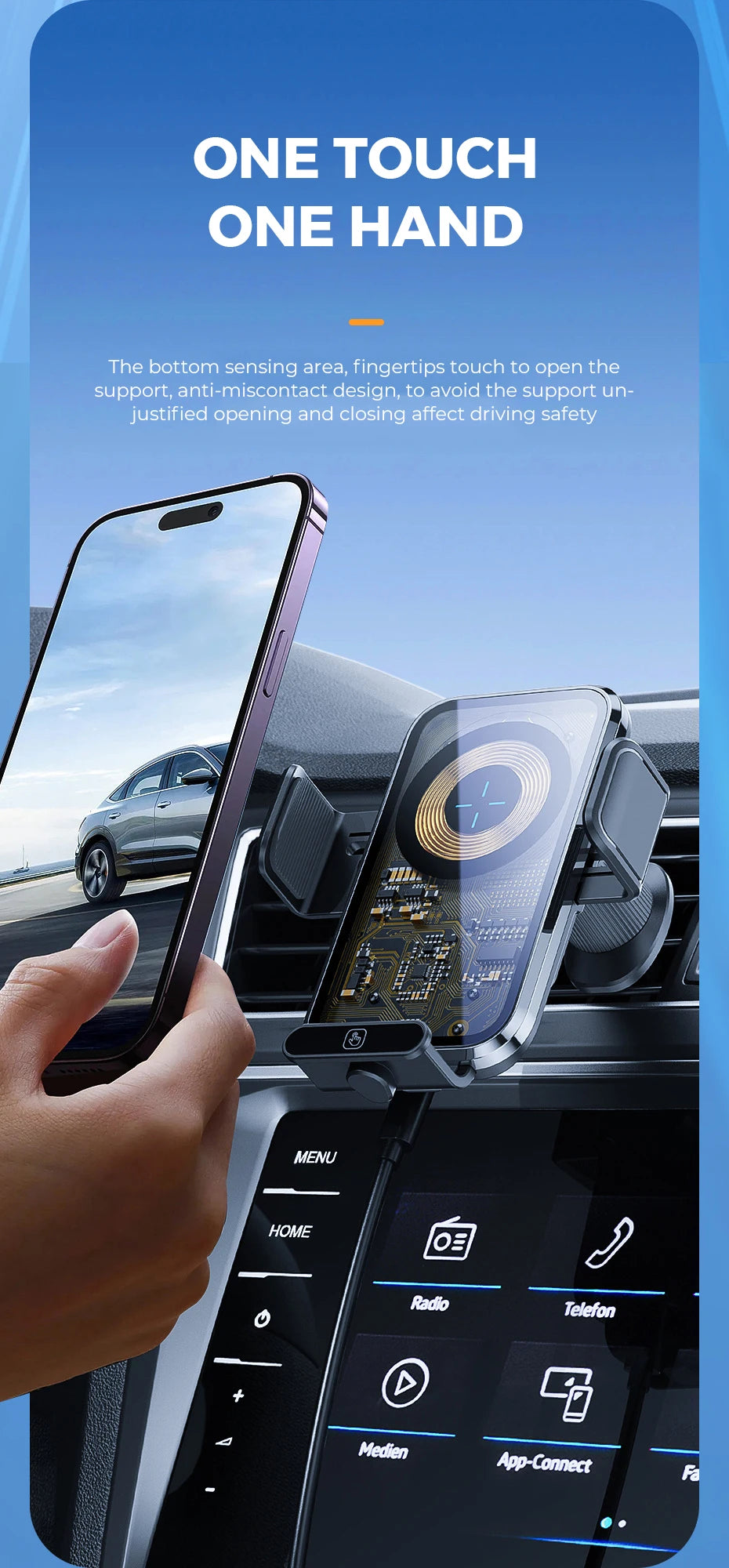 Wireless Car Charger, Fast Charging Phone Holder BothLin 3 in 1 Phone Mount Auto Clamping Car Accessories