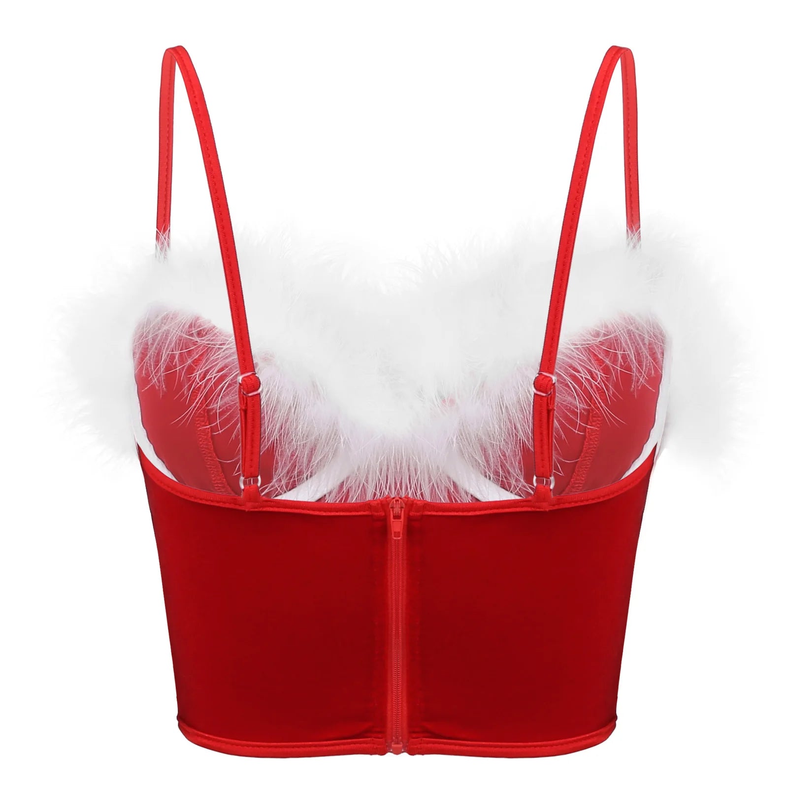 Women Christmas Costume Underwired Bra Faux Fur Flannel Corset Crop Top Xmas Santa Claus Dress Up Carnival Theme Party Clubwear