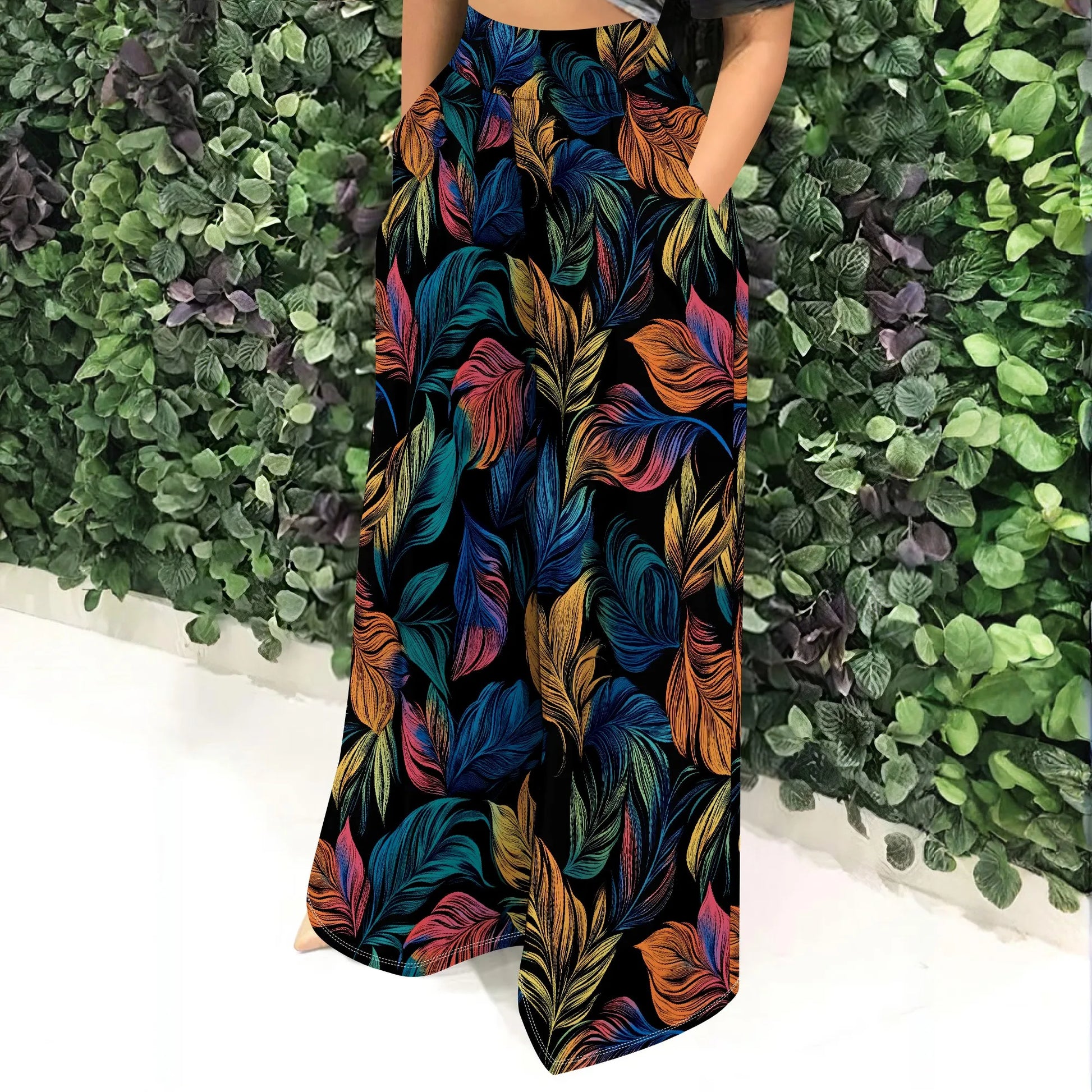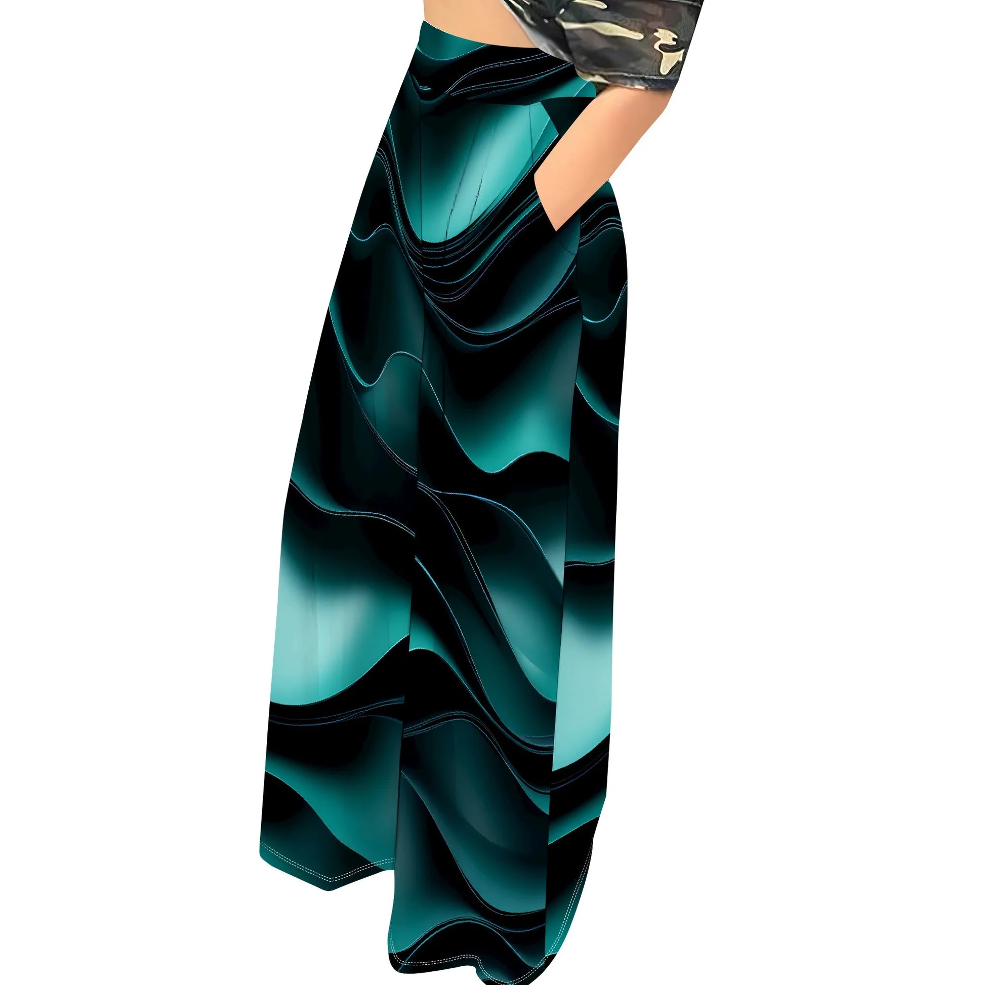 Women' s Camouflage Long Pants High Waist Wide Leg Stretchy Loose Fit Trousers with Pocket