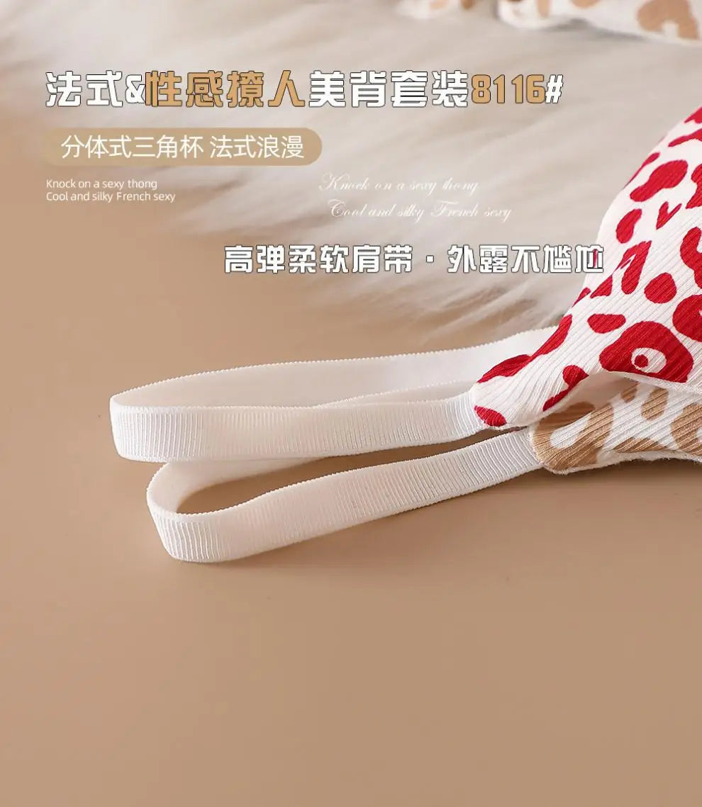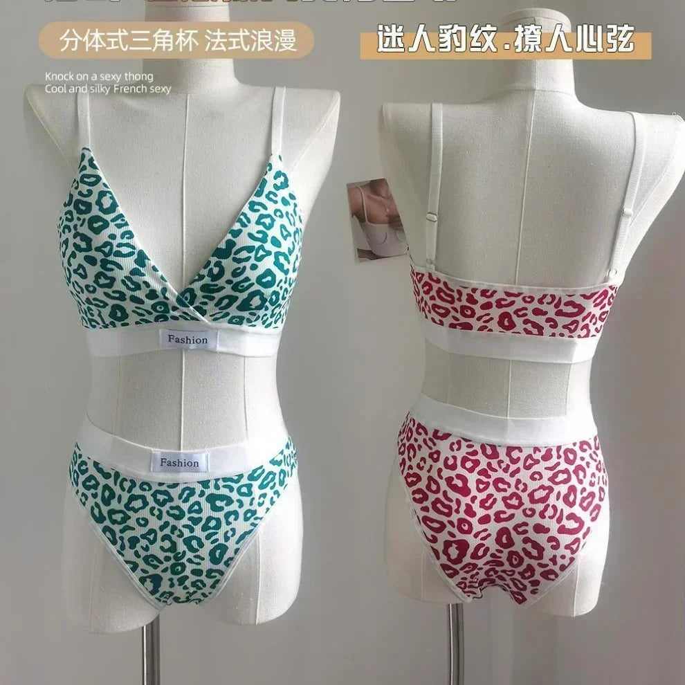 Women Seamless Bra Set Low Waist Panties Leopard Bralette Sexy Lingerie Set Vneck Sport Brassiere Female Cotton Underwear Set