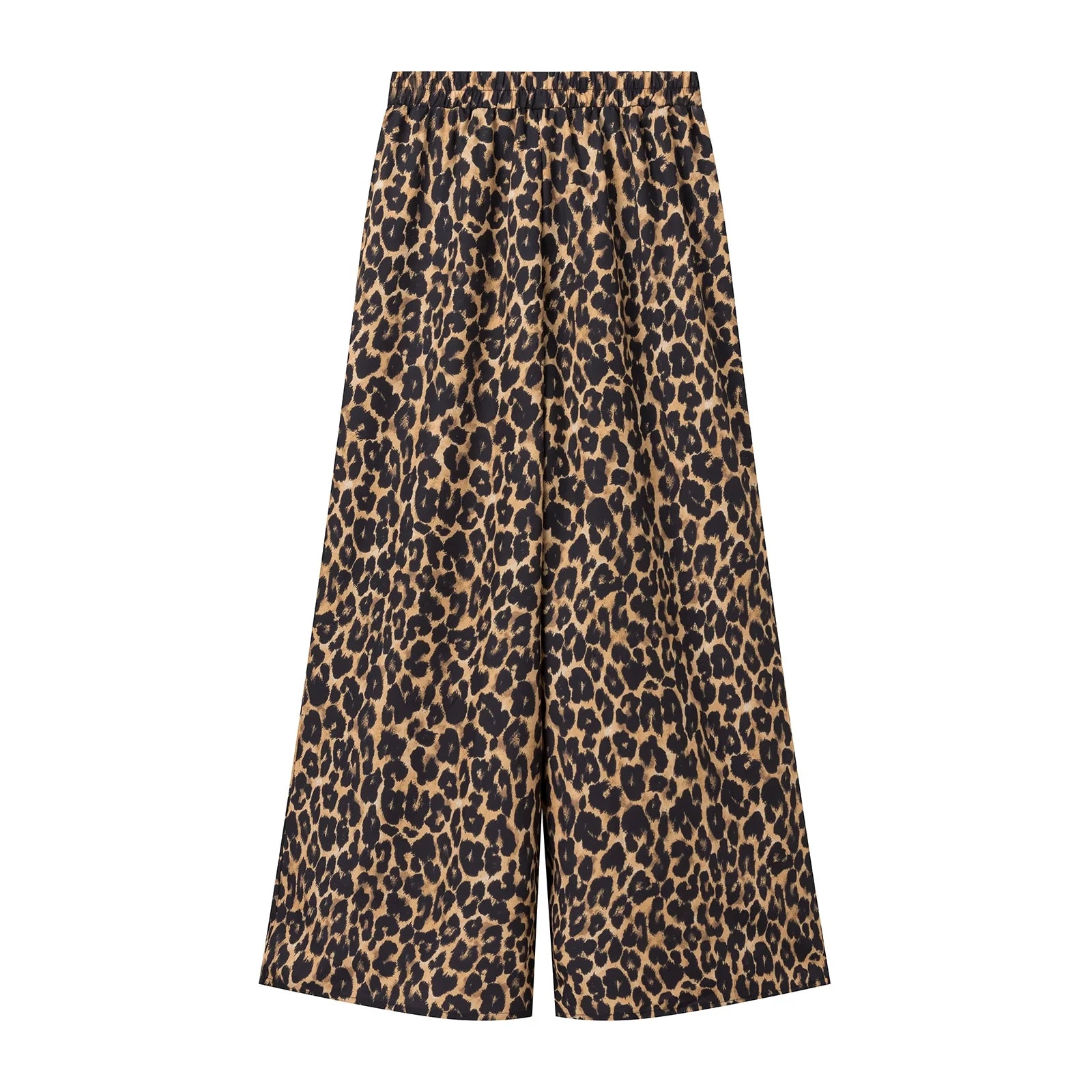Women Summer New Women's Fashion Versatile Animal Print Elastic Waist Drop Mid Waist Wide Leg Pants