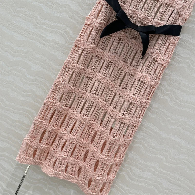 Women's dress New Sexy hollow out sleeveless long dresses for summer 2025 Bow waist belt slim midi dresses V-neck party dresses