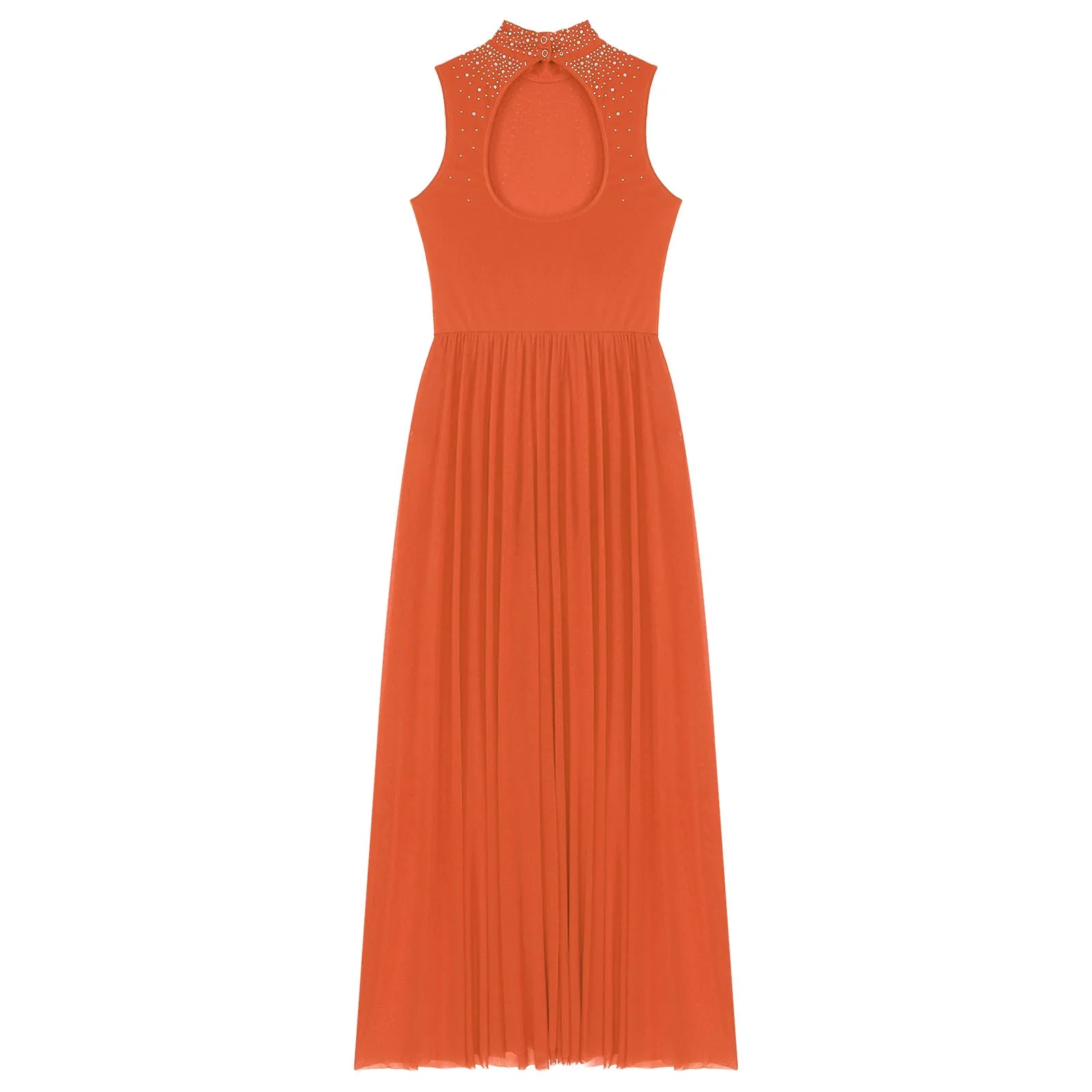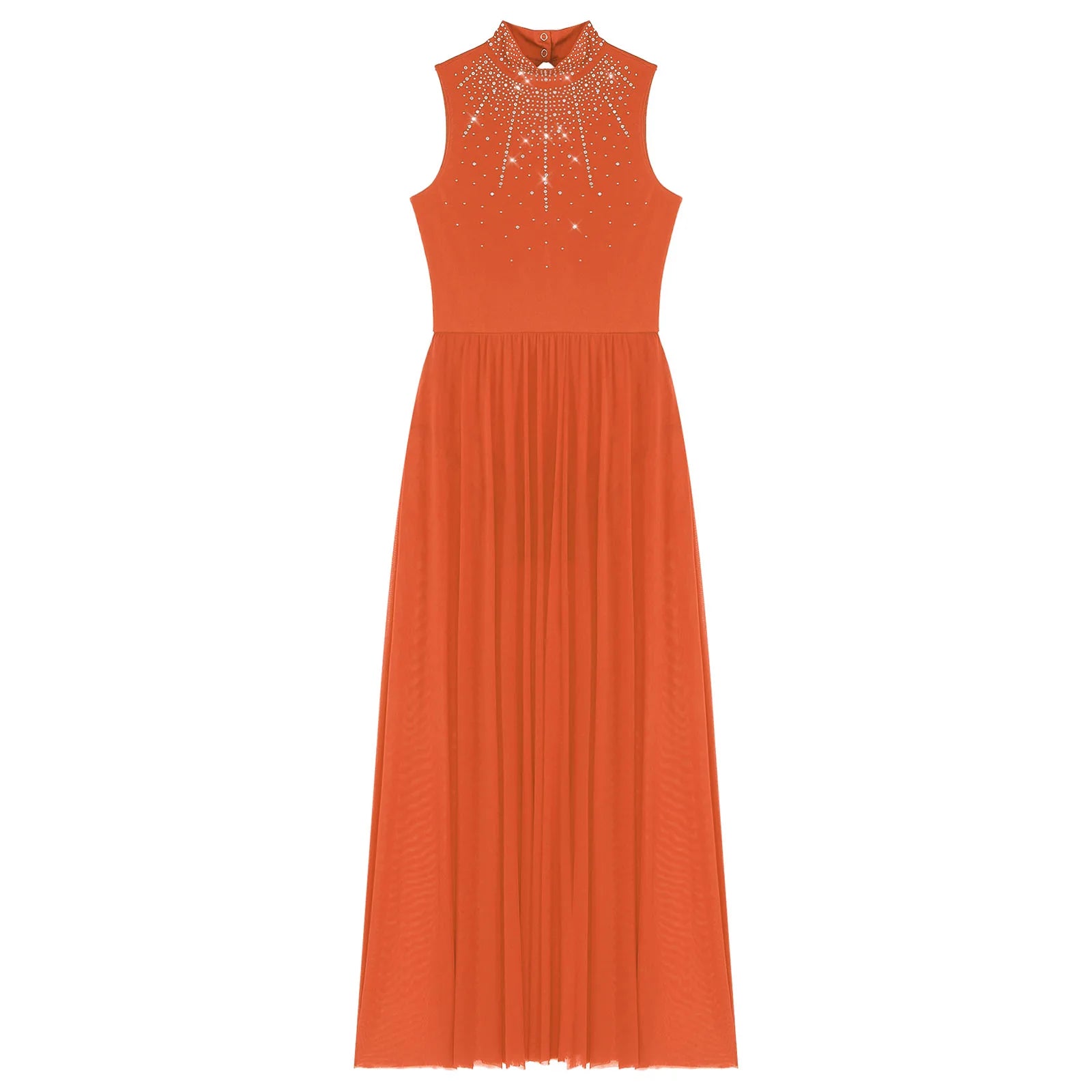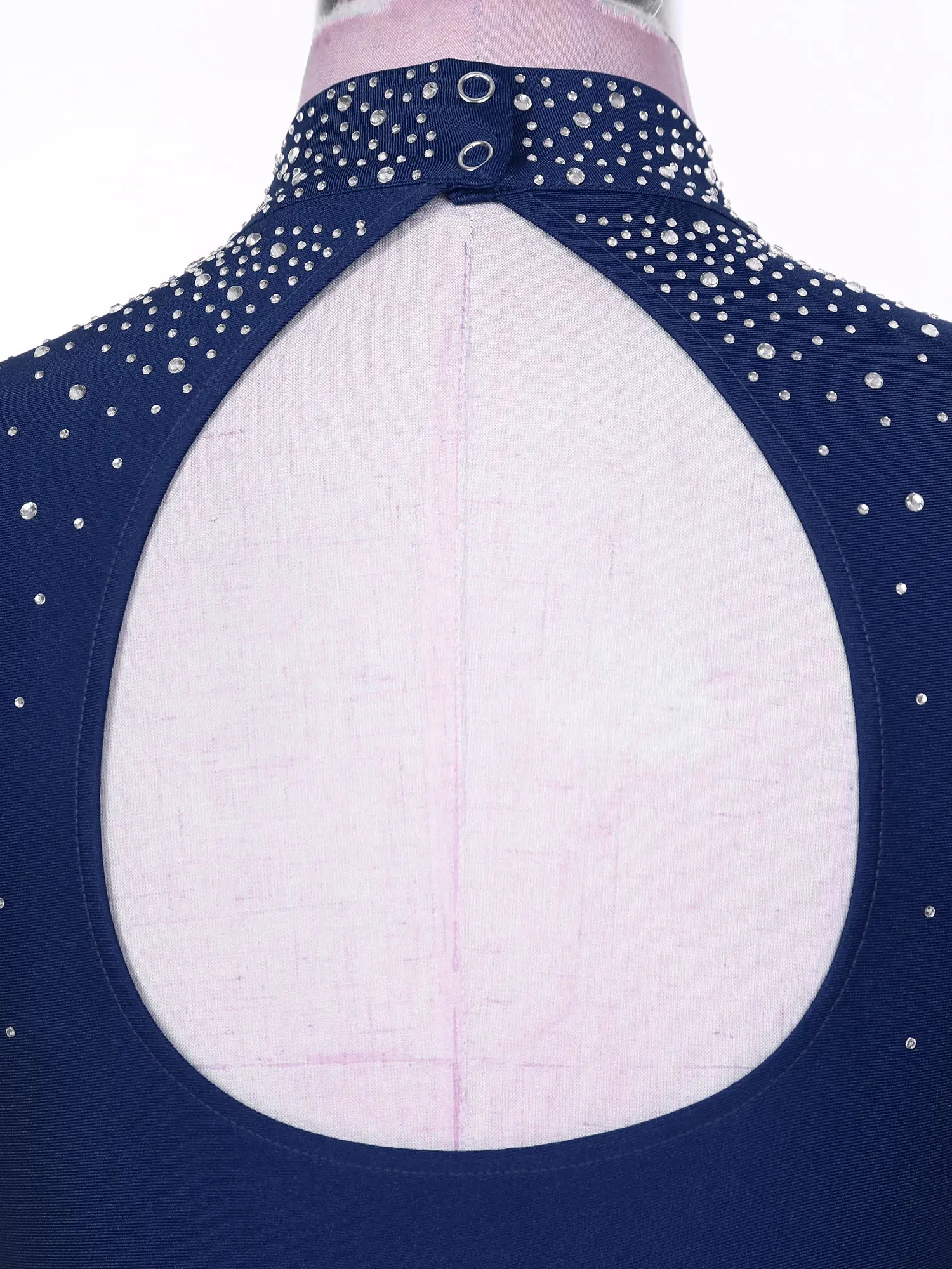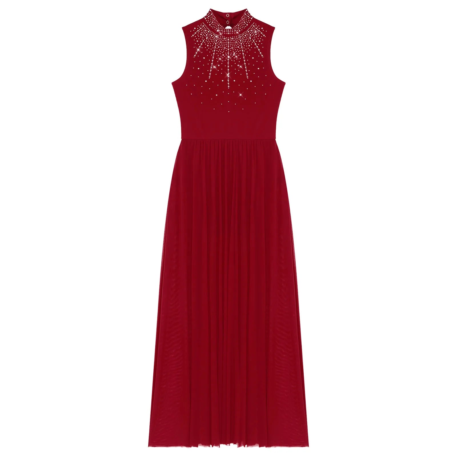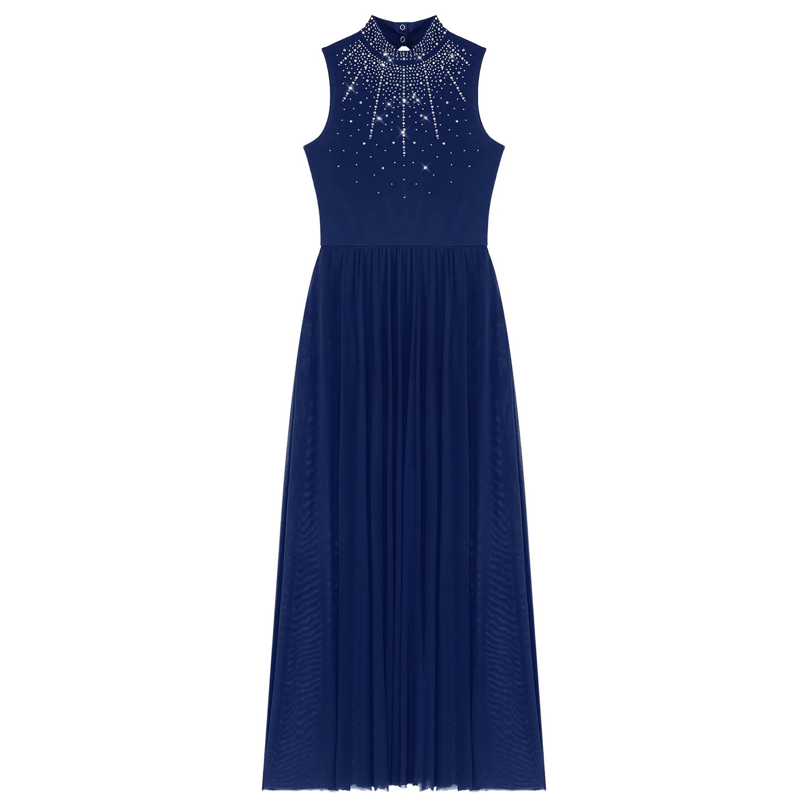 Womens Lyrical Dance Dresses Mock Neck Wide Hemline Shiny Rhinestones Maxi Dress Sleeveless Modern Contemporary Leotard Dresses