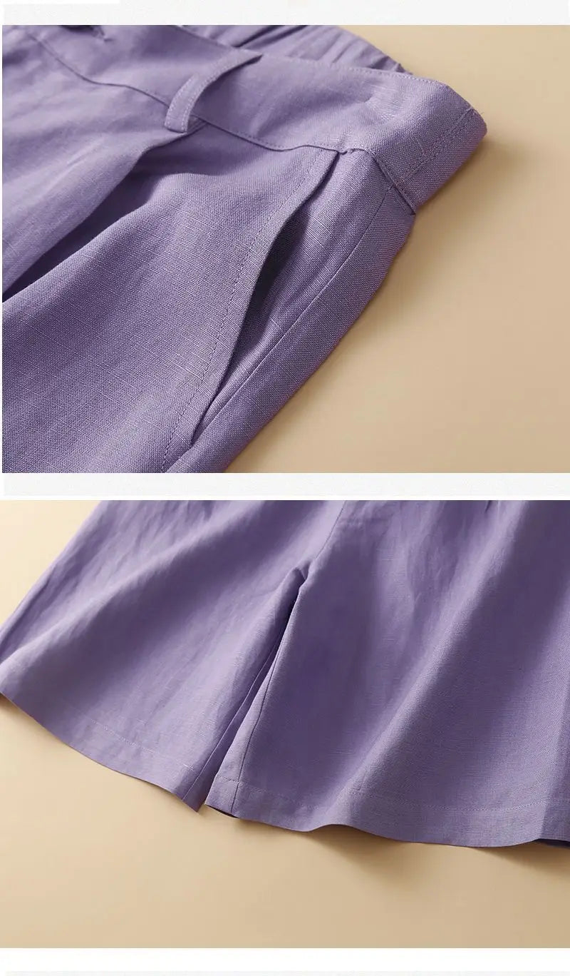 Women's Shorts Cotton Linen High Waisted Short Pants Casual Loose Solid Purple Button Summer Shorts for Women